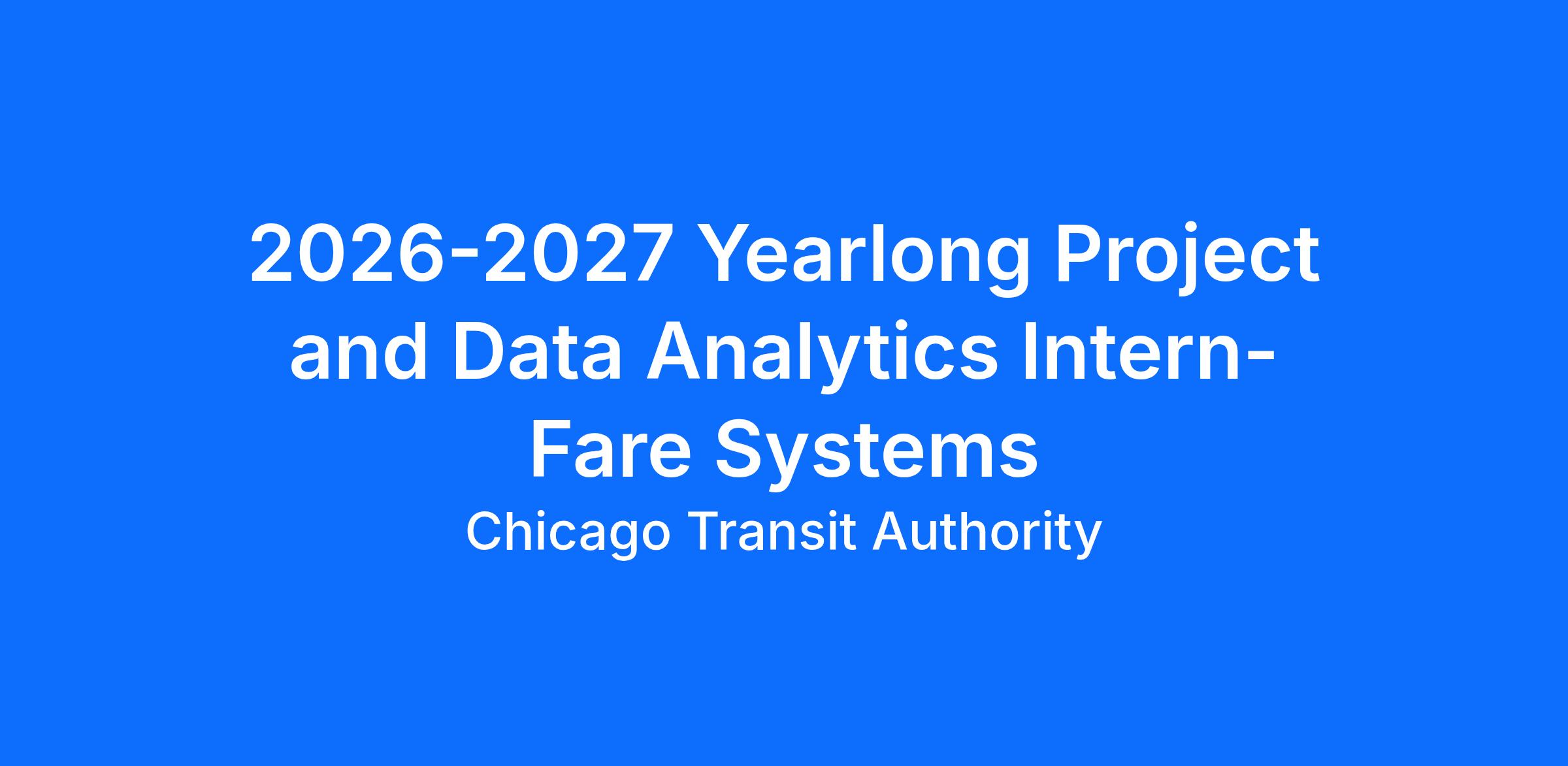 Primary work location for this role\: CTA Headquarters (567 W. Lake Street, Chicago Illinois 60661)