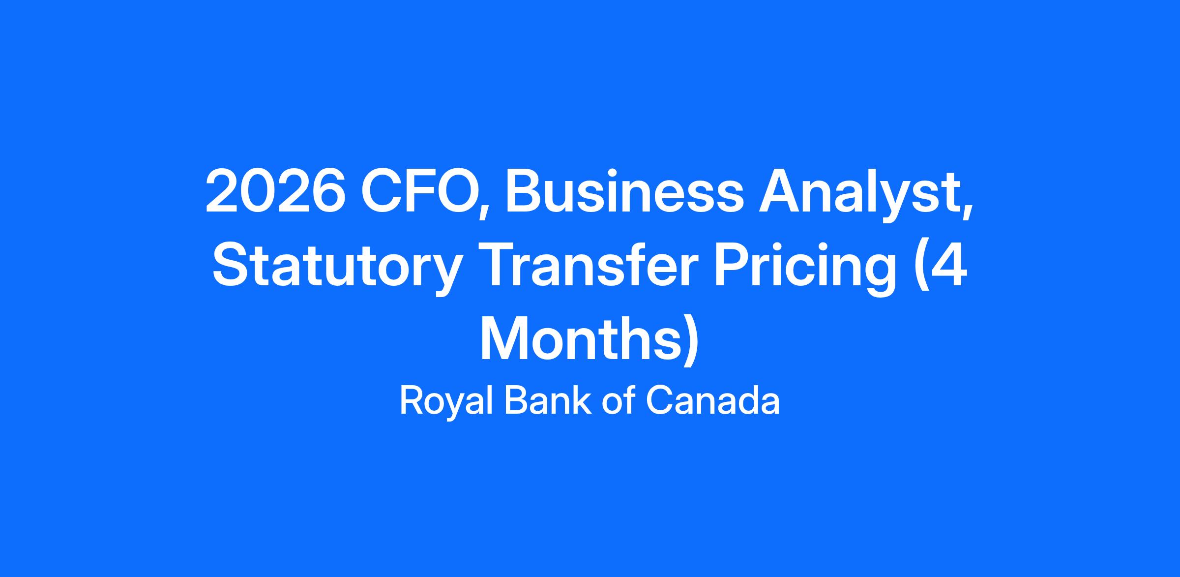 The Statutory Transfer Pricing (STP) Implementation team is part of RBC Enterprise Controller within the CFO group. Summer Interns are recruited into various teams within the CFO group. This position will support improvement initiatives to enhance efficiencies and controls in STP activities and assisting in the effort to ensure that RBC satisfies all global STP and finance requirements consistently and comprehensively.