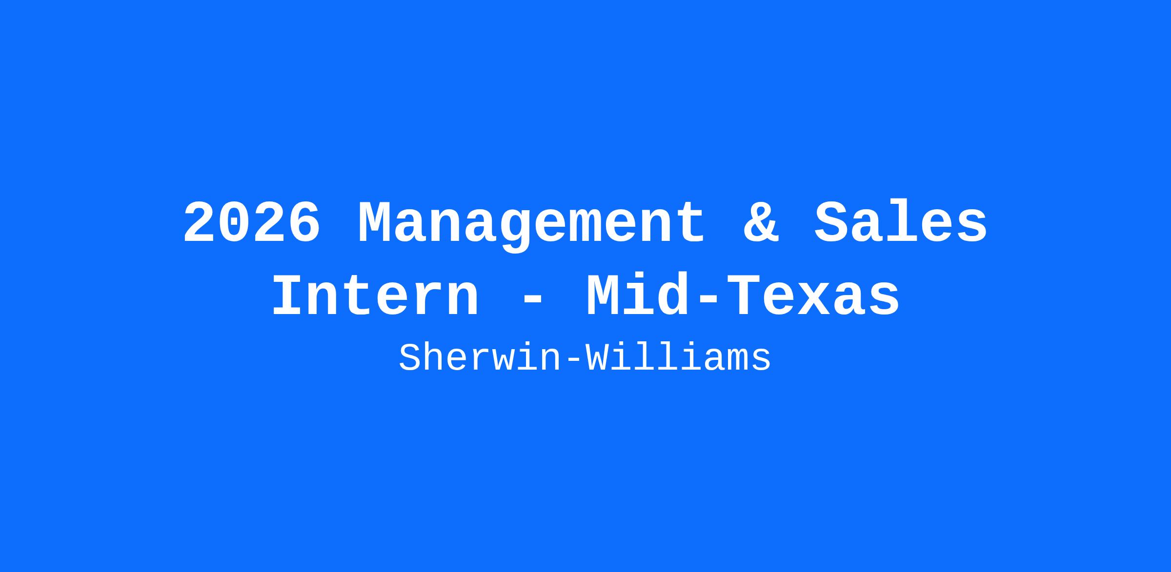 The Sherwin-Williams Management & Sales Internship is a paid, 10-12-week summer program offering hands-on experience in our retail stores, providing insight into management, sales, and store operations as well as meaningful customer experiences. Our store internship program is designed to provide you with a comprehensive learning experience through practical business-to-business and retail experience working in a paint store. You will gain insight into a career in outside sales by traveling with a Sales Representative and spending structured time with your management team. You will also complete a project that addresses critical business issues alongside your peers and with the support of leadership.