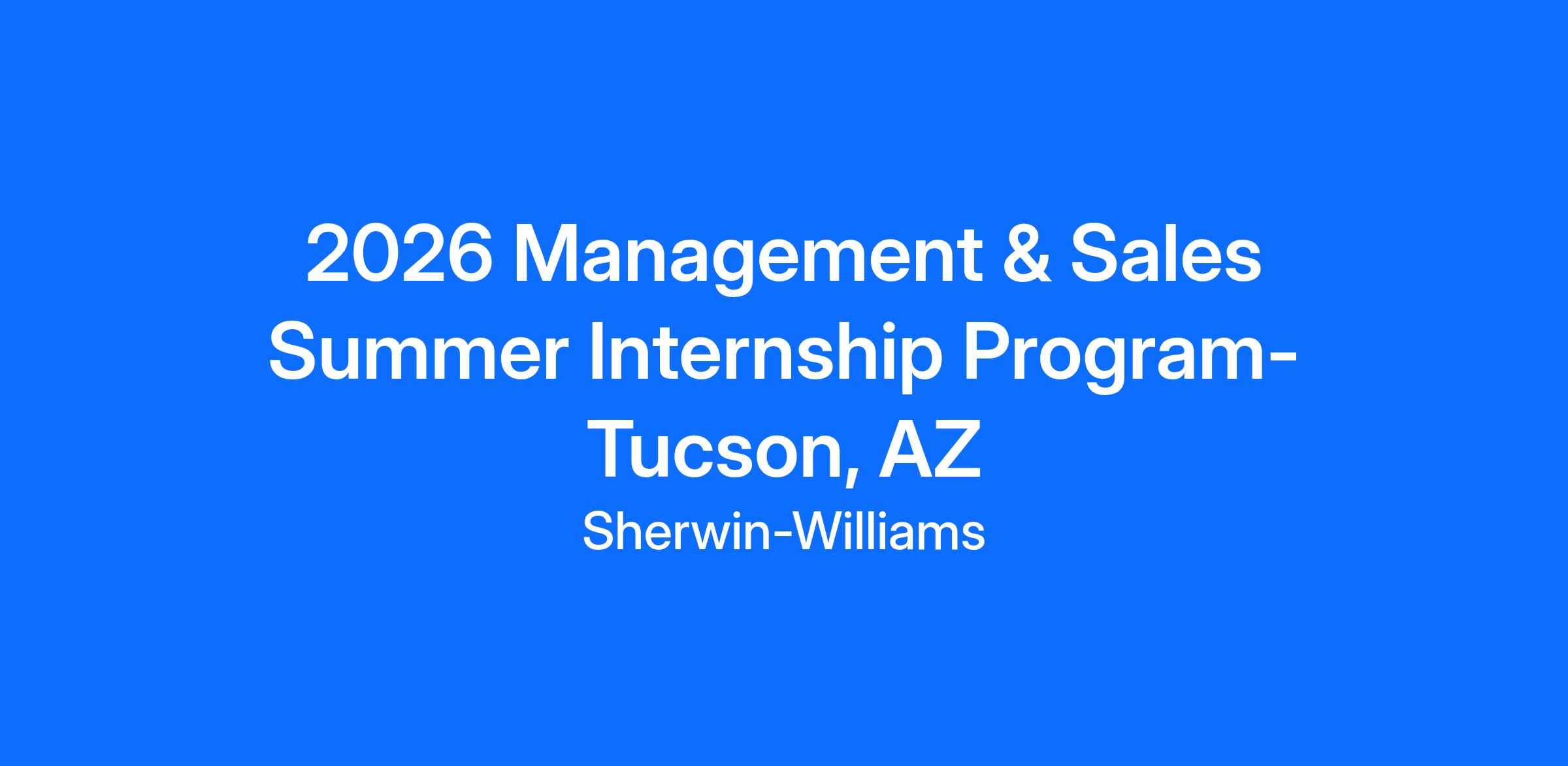 The Sherwin-Williams Management & Sales Internship is a paid, 10-12-week summer program offering hands-on experience in our retail stores, providing insight into management, sales, and store operations as well as meaningful customer experiences. Our store internship program is designed to provide you with a comprehensive learning experience through practical business-to-business and retail experience working in a paint store. You will gain insight into a career in outside sales by traveling with a Sales Representative and spending structured time with your management team. You will also complete a project that addresses critical business issues alongside your peers and with the support of leadership.