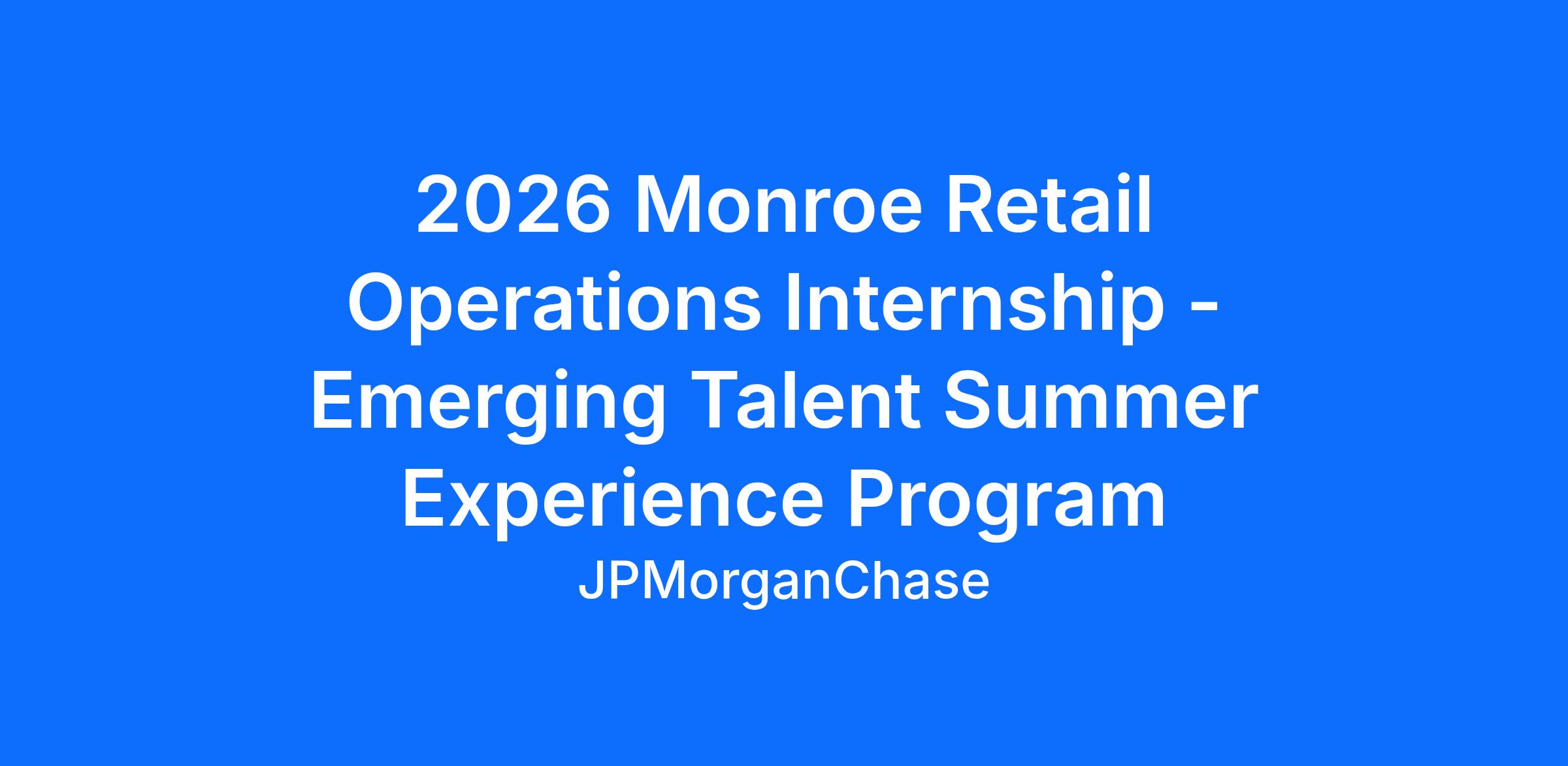 As a 2026 Emerging Talent Summer Experience Intern in JPMorganChase Consumer and Community Banking you will be offered variety, growth, and a great introduction to a range of projects and tasks. With a heritage of more than two centuries, a broad range of core and alternative strategies, and professionals operating in every major world market, we offer experience and insight that few other firms can match.