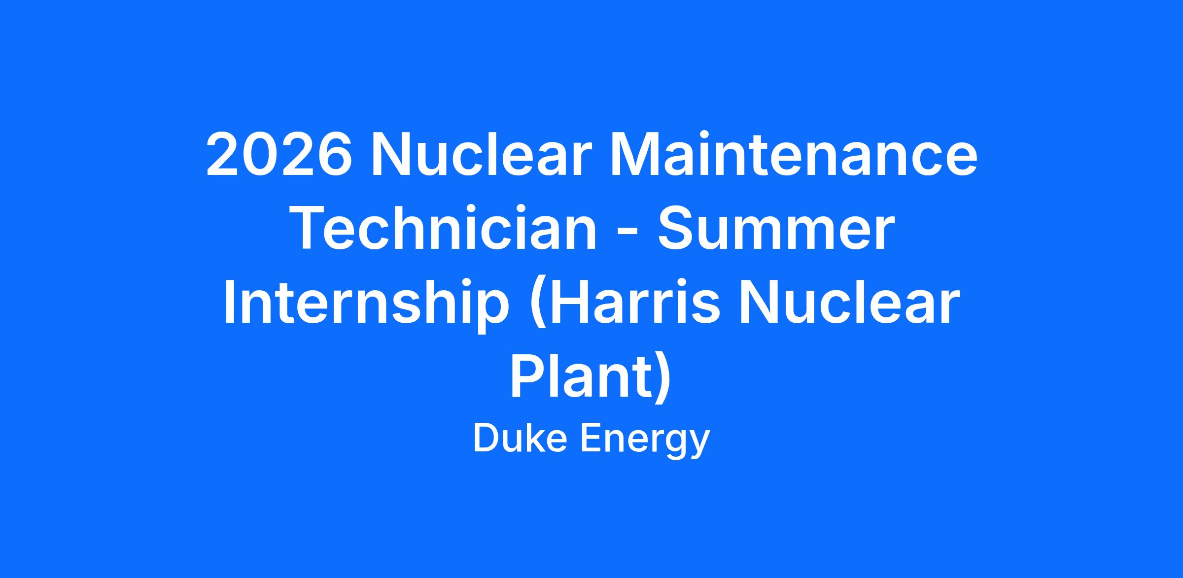 - Residency Requirement: The position has a residency requirement within 60 minutes from your residence to Harris Nuclear Plant.