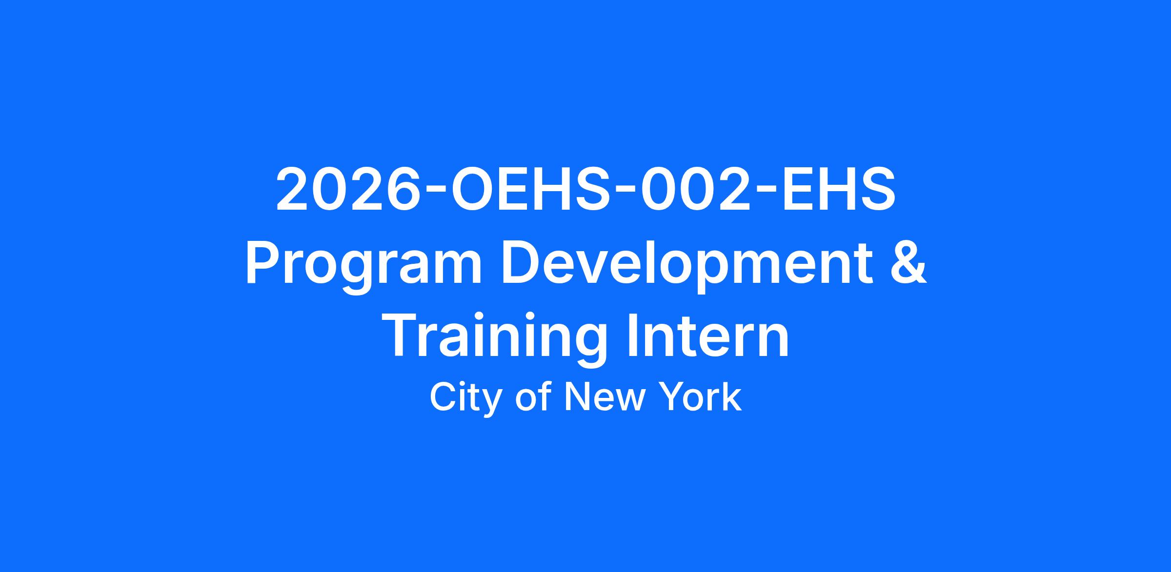The Office of Environmental Health and Safety (OEHS) is responsible for maintaining agency-wide environmental and occupational health and training compliance. To achieve this goal, the Training Division of OEHS continues to design and develop EHS training modules and provide data metrics on EHS training and support to all bureaus to ensure compliance with all applicable environmental, health and safety laws, rules and regulations. Under general guidance of a Training Manager with direct supervision from the EHS Training Specialist, the selected candidate will assist this division in serving the EHS Training Compliance needs of the Agency by: