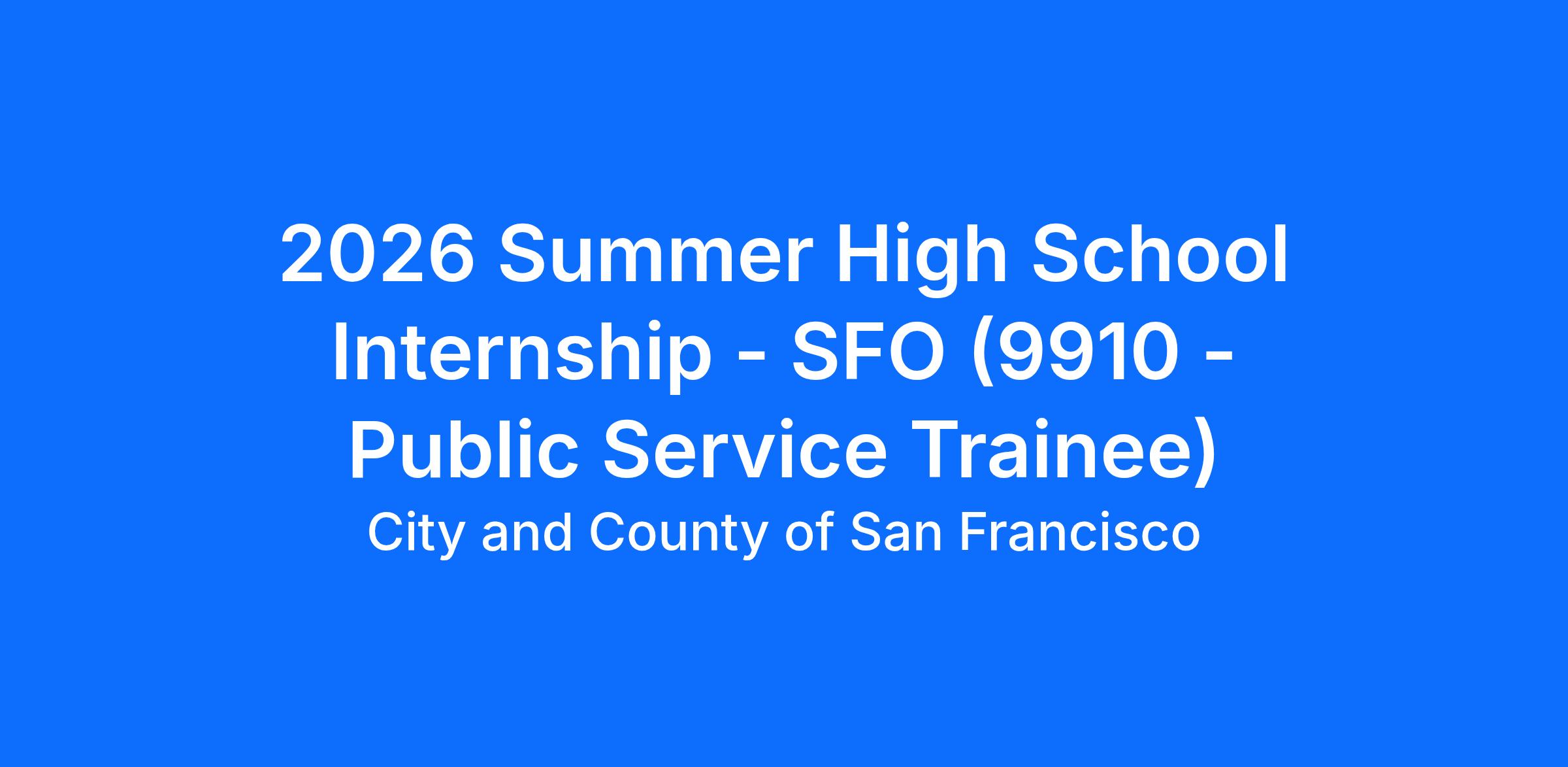 2026 Summer High School Internship - SFO (9910 - Public Service Trainee)
