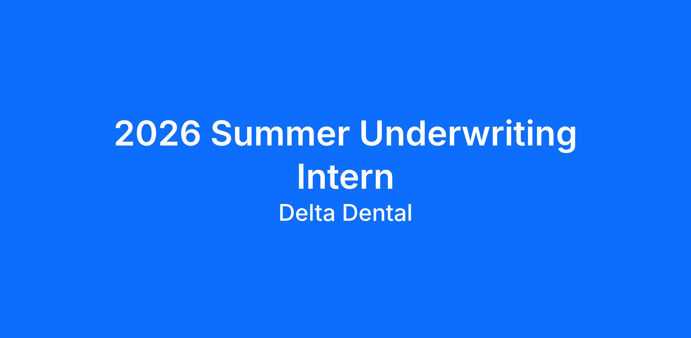 DescriptionLooking to build real-world analytical experience this summer? Delta Dental is hiring three Undergraduate Interns to join our Underwriting team!