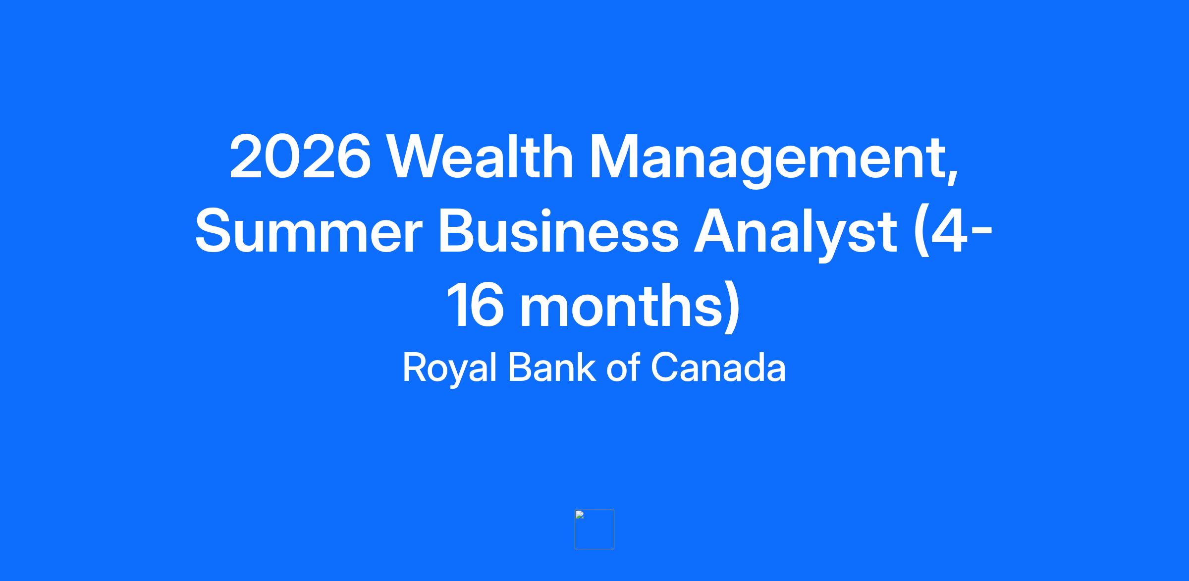 We are seeking summer interns across several Business Analyst roles (including but not limited to the following: Risk Management, Strategy and Product, Trade Operations, Operations Analyst, etc.) to join the RBC Wealth Management Team. Success in this role will require a highly organized, detail-oriented (accurate and thorough), excellent communicator who can effectively collaborate cross-teams, who is solutions-oriented and who thrives in a dynamic and changing environment. The ideal candidates will demonstrate initiative, excellent time management skills, and a proactive approach to problem-solving.