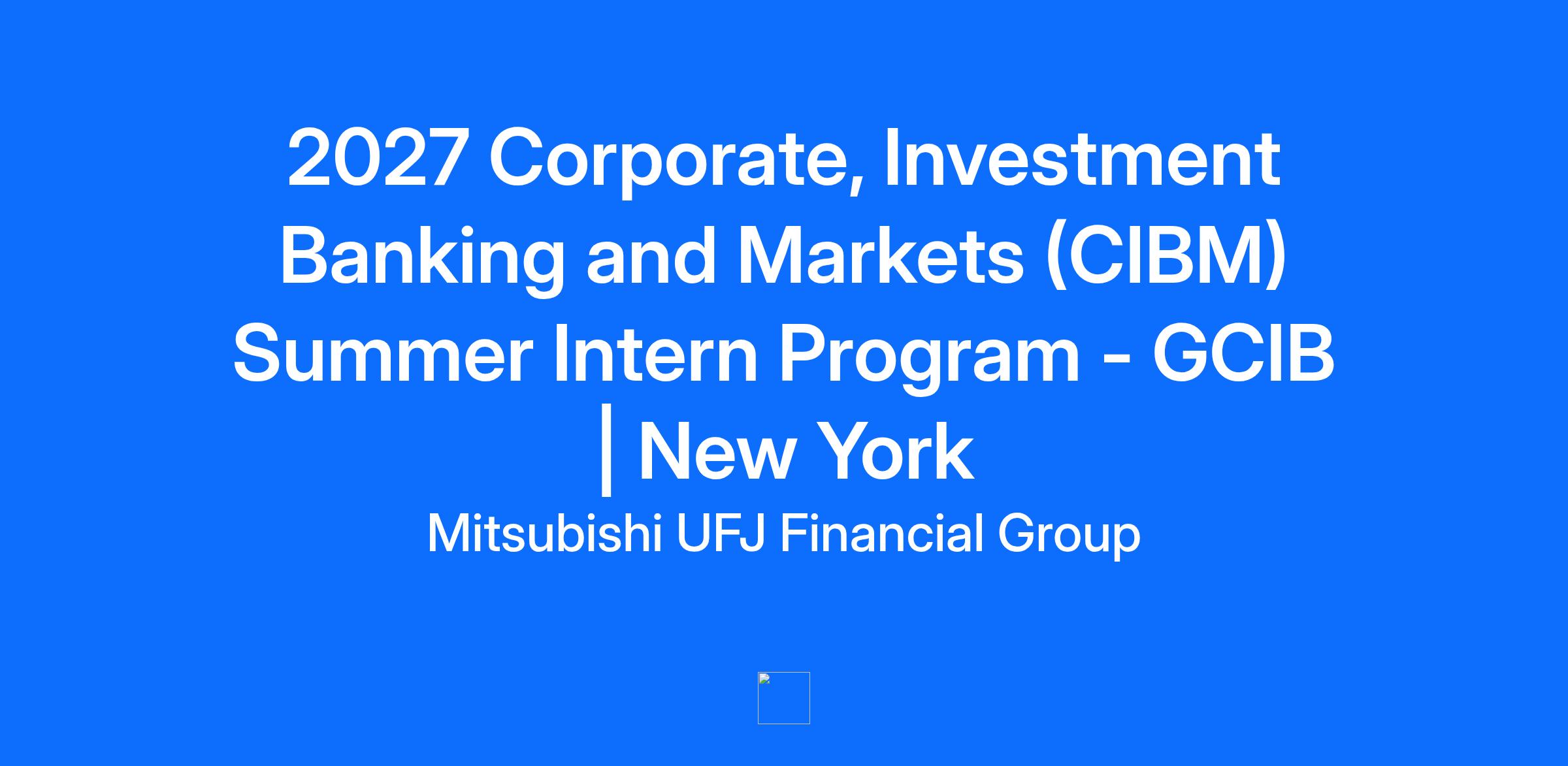 The selected colleague will work at an MUFG office or client sites four days per week and work remotely one day. A member of our recruitment team will provide more details.2027 Corporate, Investment Banking & Markets (CIBM) Summer Intern Program - GCIB | New York