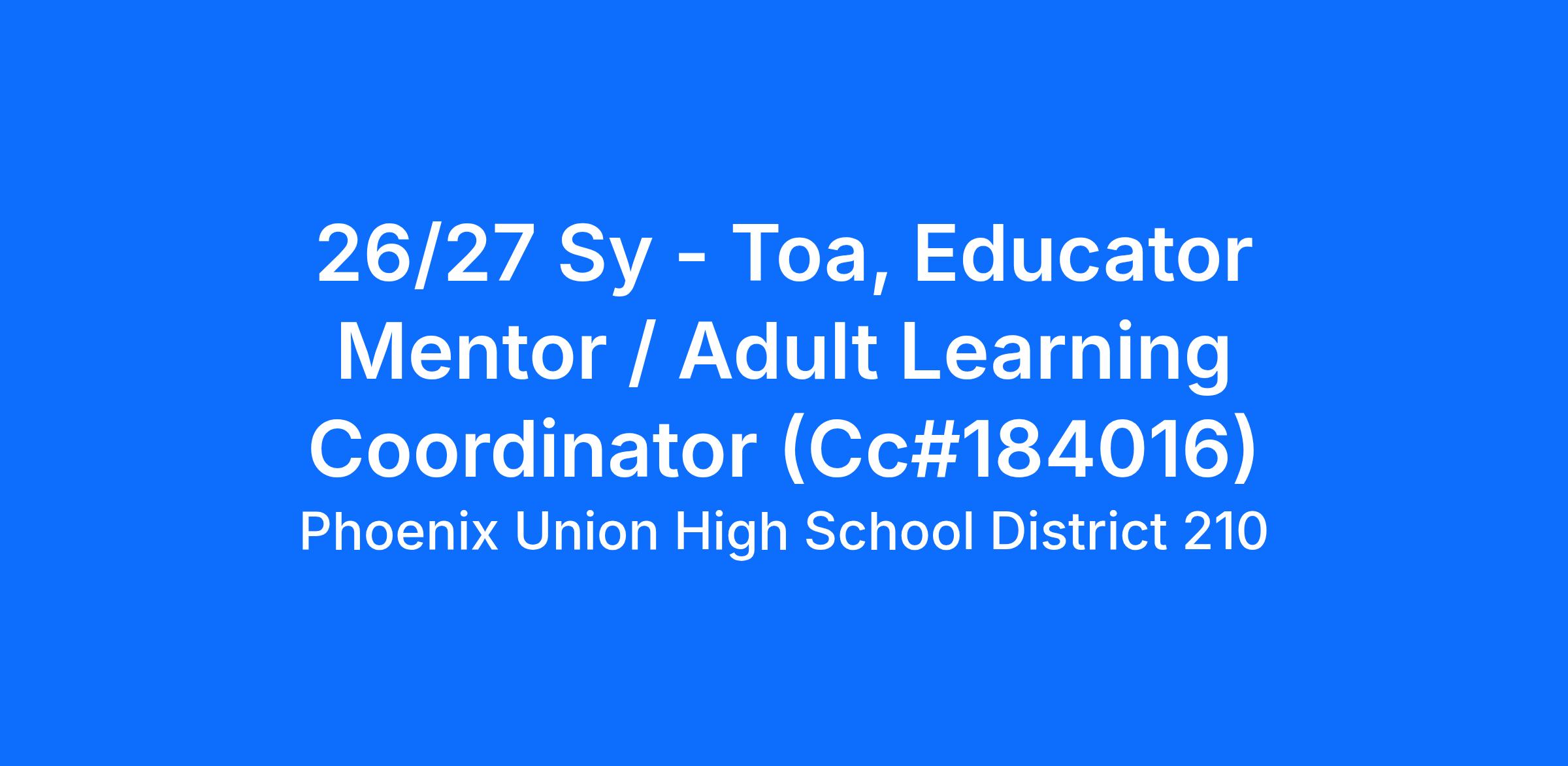 Educator Mentor / Adult Learning Coordinator, TOA