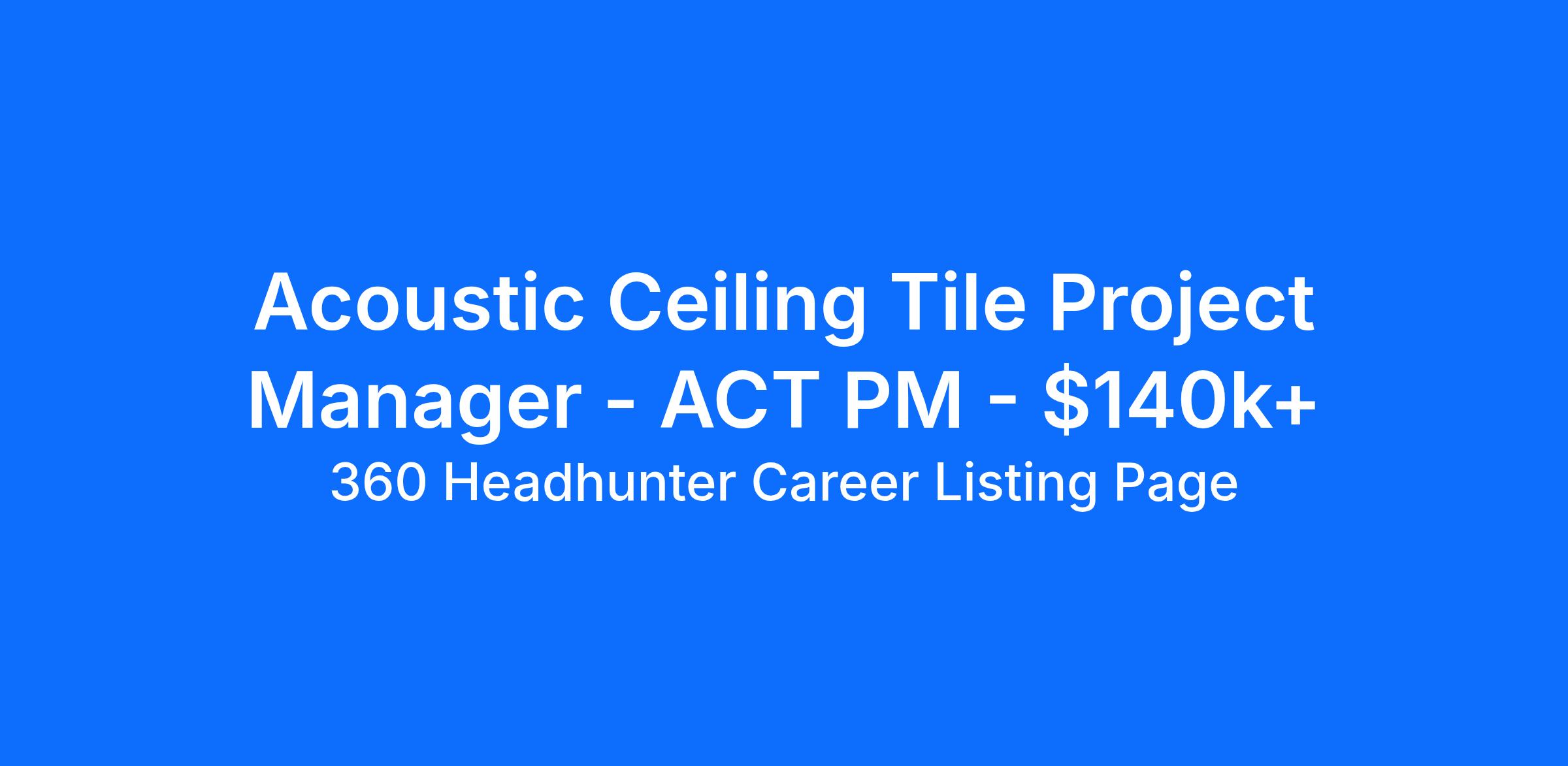 If you’re ready to take your career to the next level as an Acoustical Ceiling Tile Project Manager, we want to hear from you! Apply today by submitting your resume and a cover letter outlining your relevant experience to zach@360headhunter.com