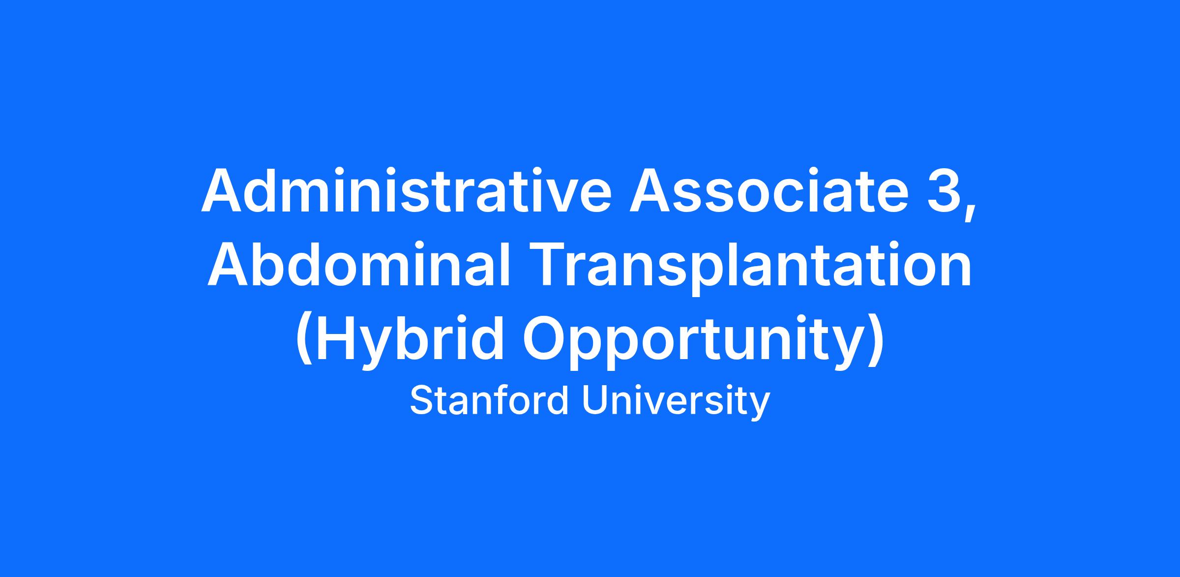 The Division of Abdominal Transplantation is seeking a highly motivated and skilled Administrative Associate 3 to provide administrative or operational support with limited supervision. May be responsible for leading other administrative staff or subordinates.