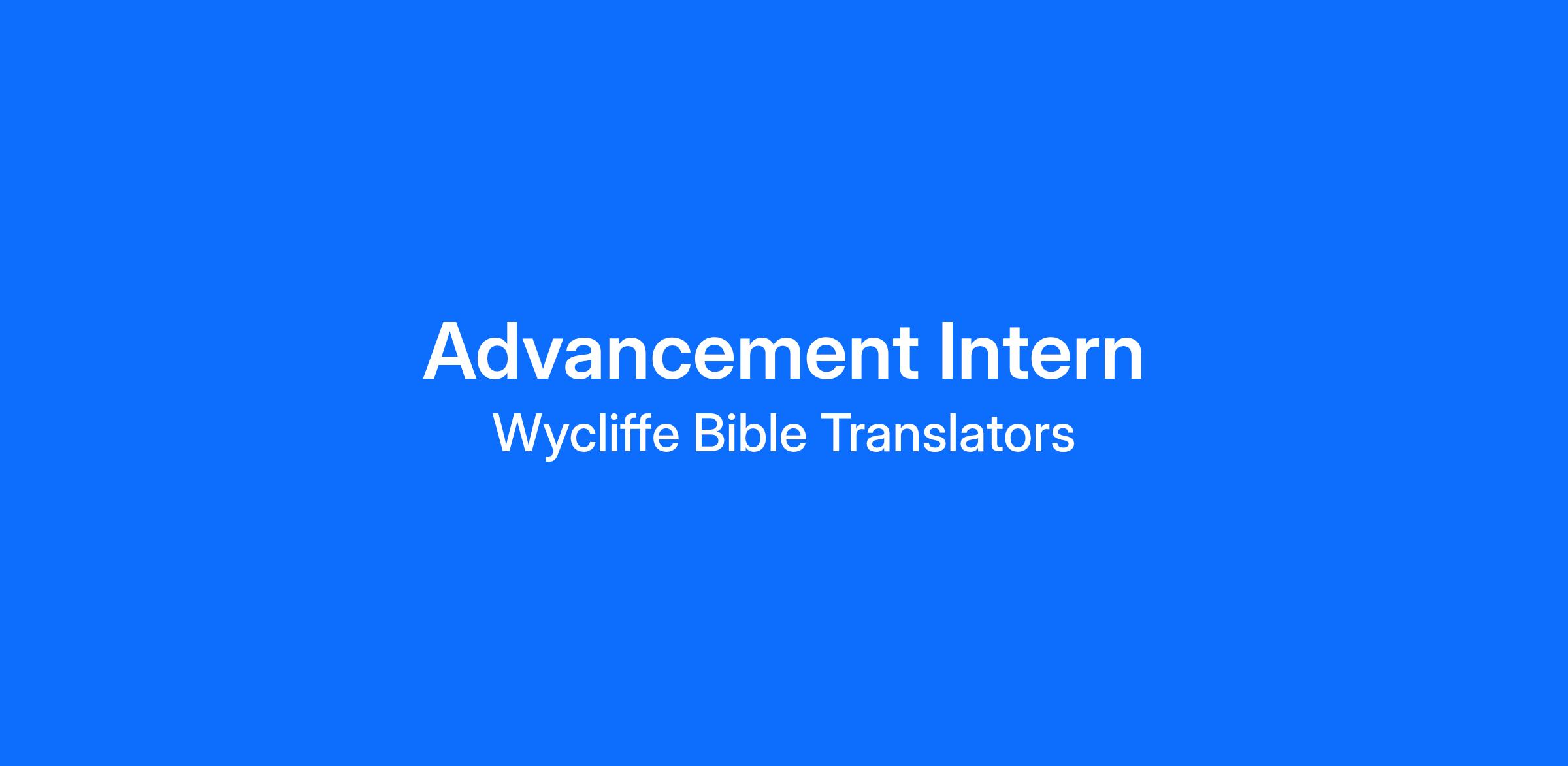 At Wycliffe Bible Translators, your work is more than just a job. As the Advancement Operations Intern, you’ll play a vital role in advancing Wycliffe’s mission by supporting the day-to-day operations of Wycliffe's Advancement department.Job Description