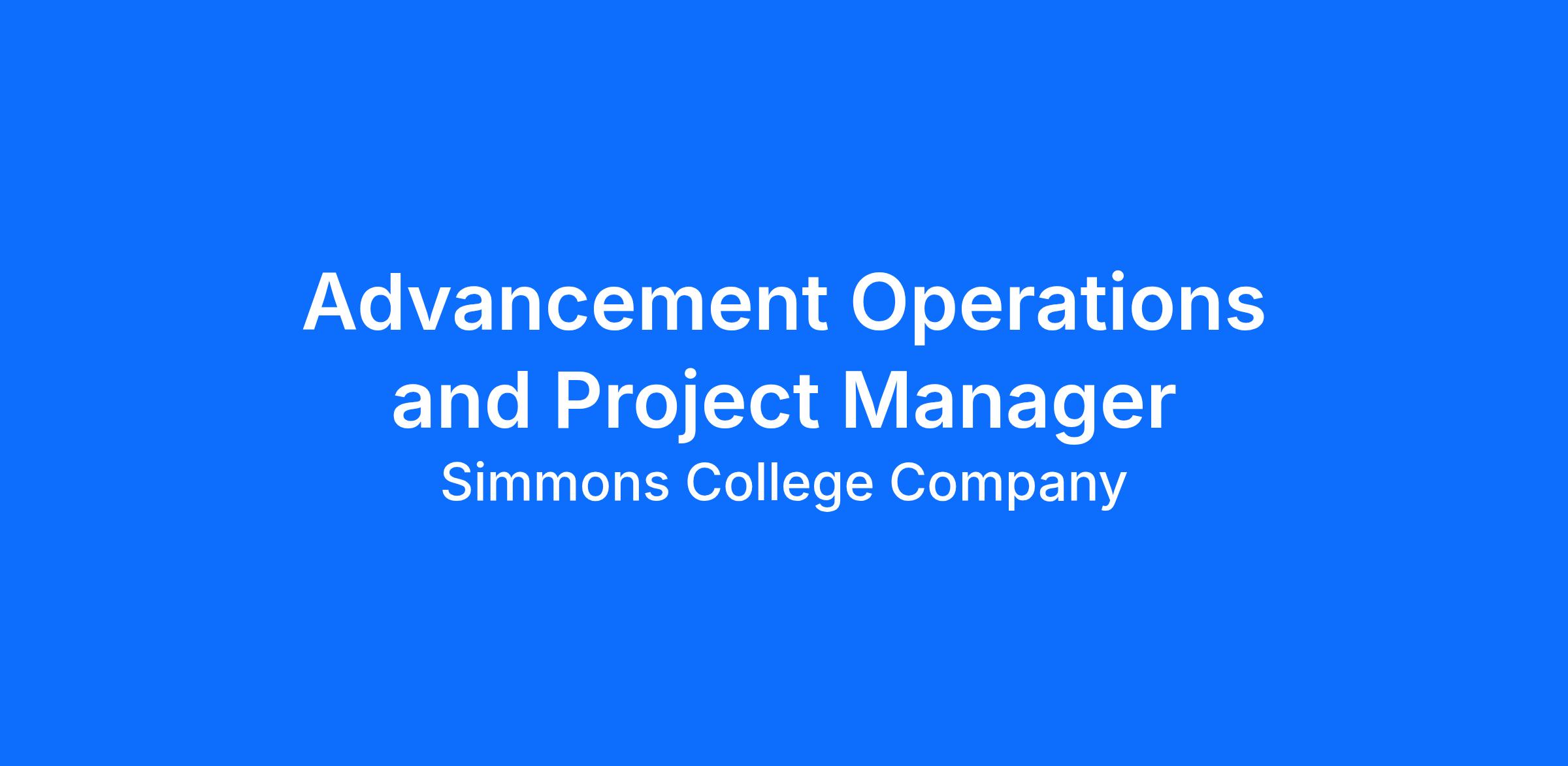 The Advancement Operations and Project Manager provides operational and administrative support to the Vice President of Advancement and the Advancement Office at Simmons University. The position requires discretion, sound judgment, and professionalism in all interactions with internal and external stakeholders. This role is critical in ensuring the efficiency of the Advancement Office by: Managing the Vice President's schedule and daily priorities, Serving as primary liaison between the Advancement Office and the Office of the President, Coordinating travel and meetings for both the Vice President and Advancement activities, Overseeing budgetary processes and financial tracking for the department, and supporting departmental operations and project management.