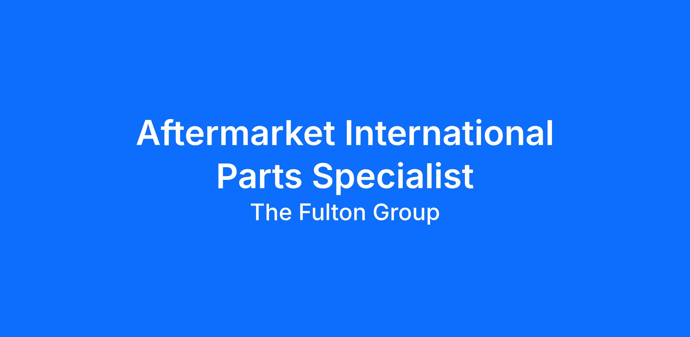 The Aftermarket International Parts Specialist is responsible for providing support to Fulton’s International Customers by ensuring all expectations (internal and external) are met in a manner that is consistent with Fulton HEART values and operating philosophy. This process includes working closely with customers and internal teams to determine which parts are needed, completing all necessary Customs and Export compliance tasks, and arranging for accurate shipment.