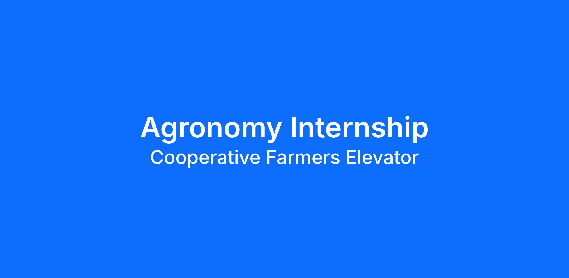 Grow with Us: Agronomy Internship at Cooperative Farmers Elevator