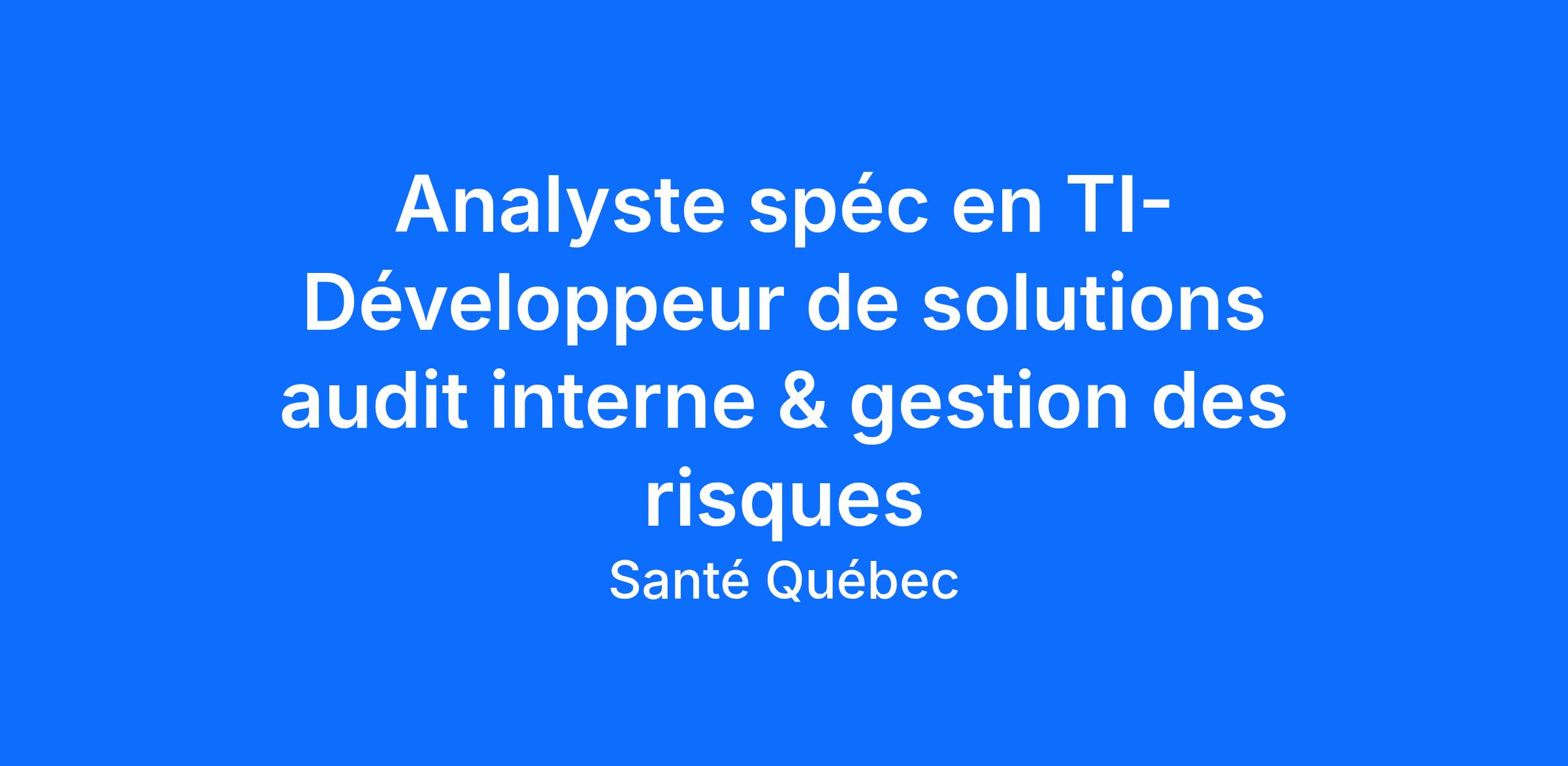 Analyste spécialisé en informatique - Développeur de solutions analytiques - Audit interne et gestion des risques