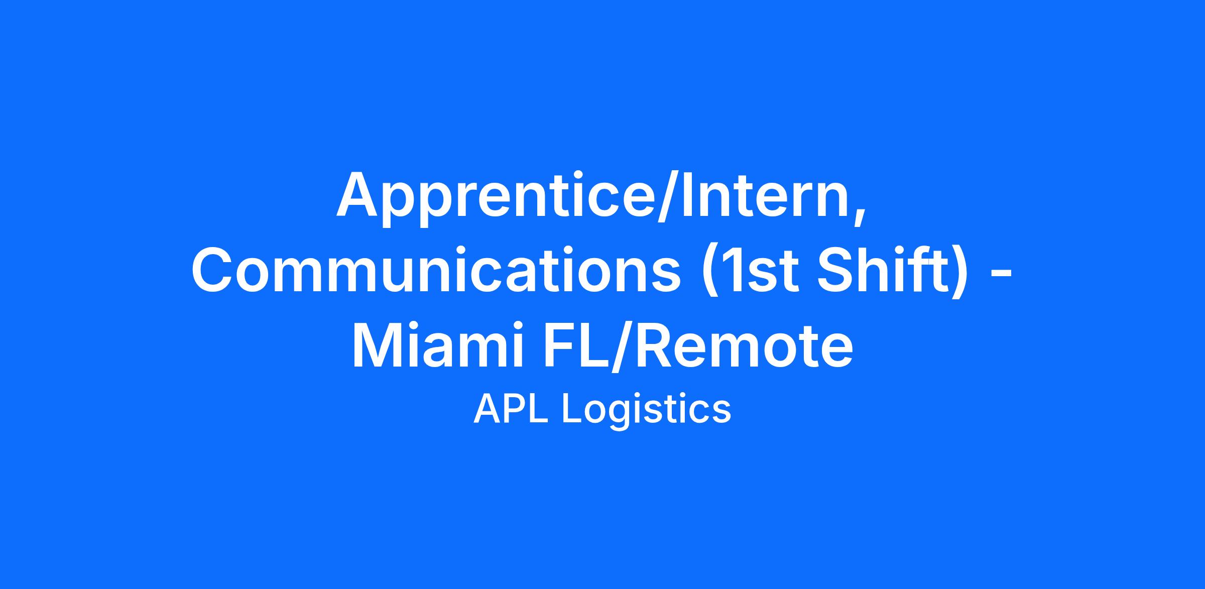 Apprentice/Intern, Communications (1st Shift) - Miami FL/Remote