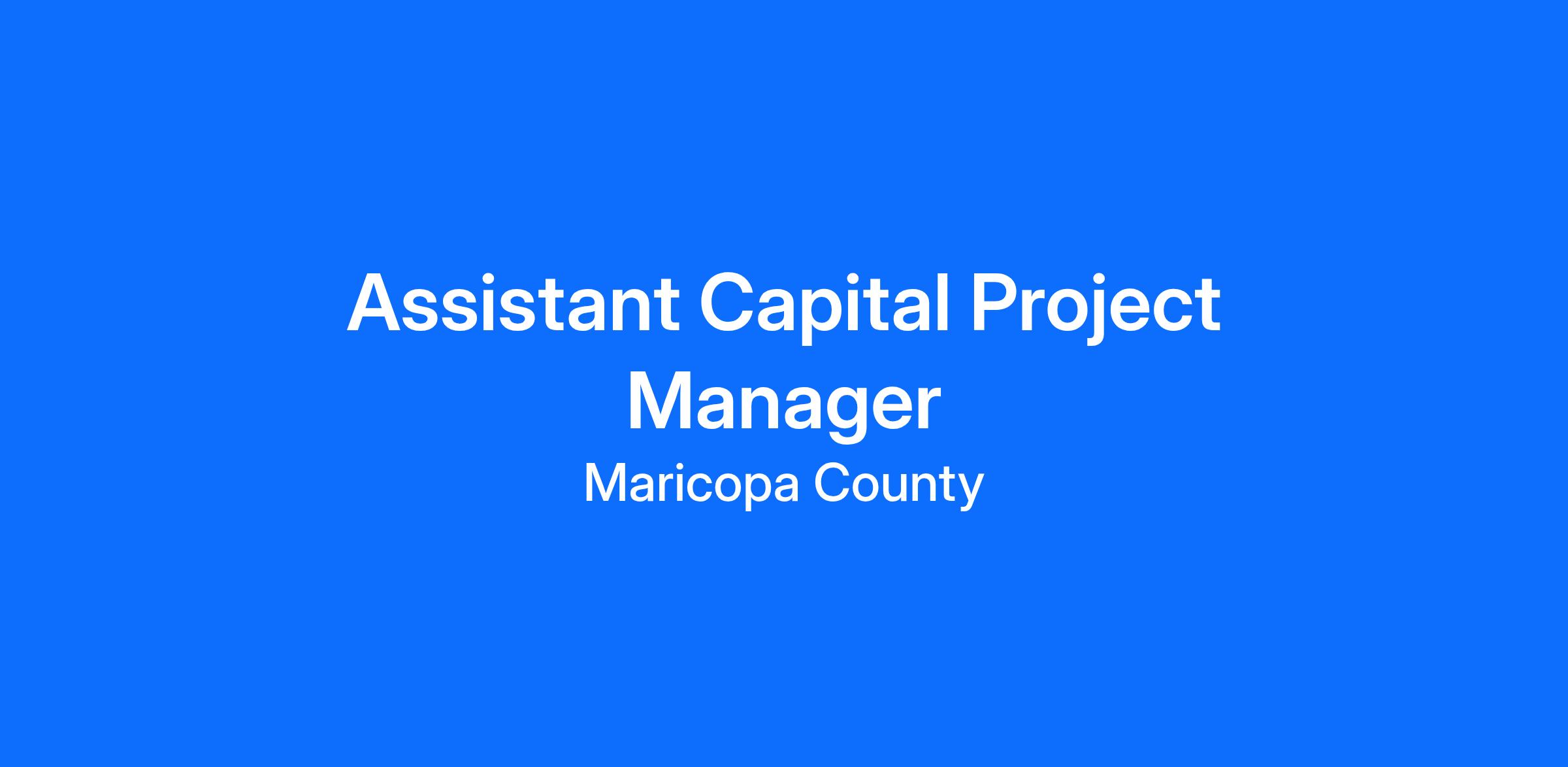 Build a career in construction and project management with Maricopa County’s Facilities Management Department! Here you can combine your interests and join our team as an Assistant Capital Project Manager! As an Assistant Capital Project Manager, you will direct the construction phases of complex and technically challenging new County buildings and renovations through all phases. This will include design, construction, and occupancy, with the responsibility for the timely completion of these projects within budget limitations.