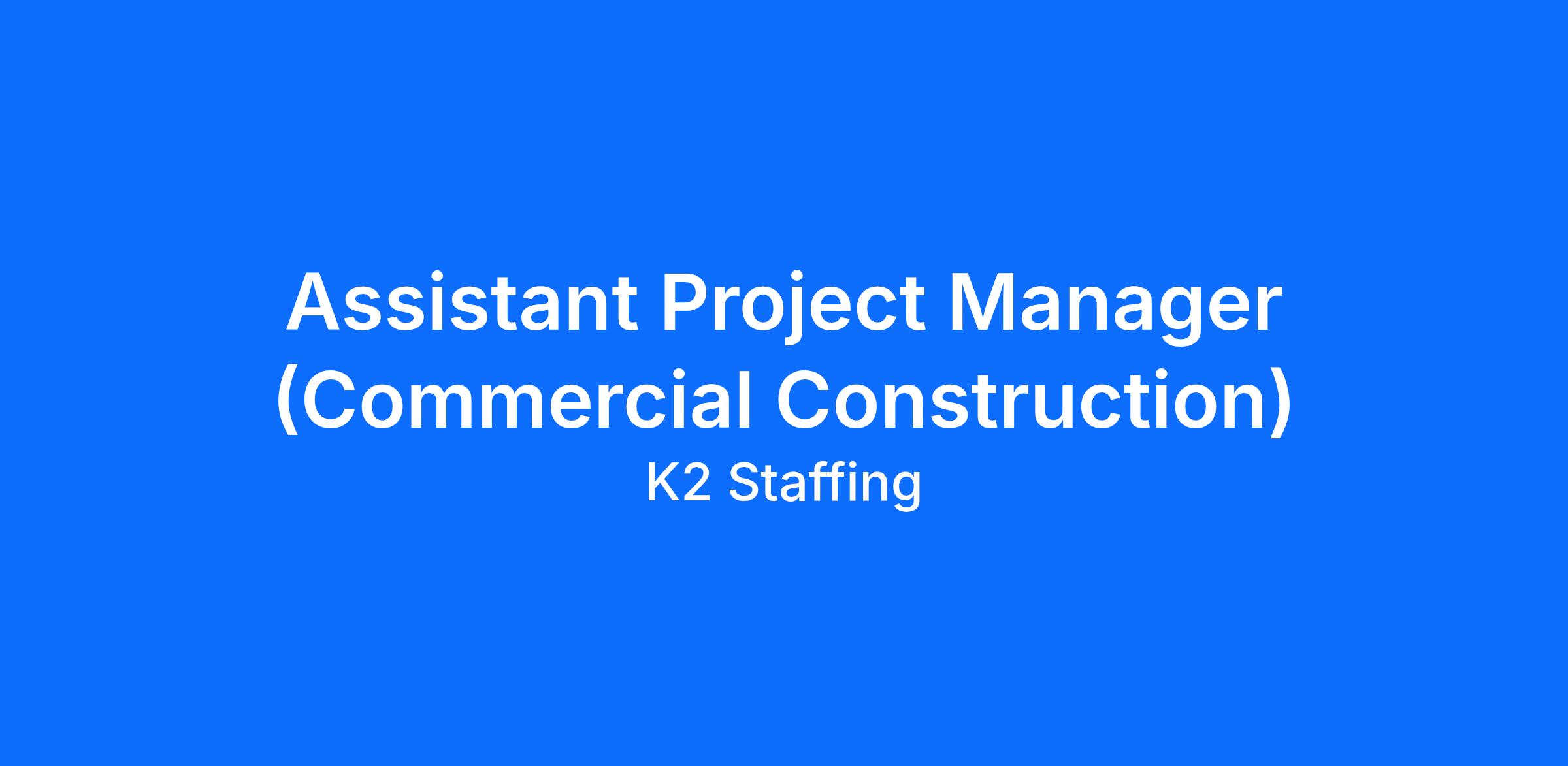 Our client provides commercial construction services throughout the western United States, delivering innovative construction solutions to clients who expect excellence. They are seeking an Assistant Project Manager (APM) to support the successful delivery of construction projects through effective planning, organization, and control of all project elements under the guidance of a Project Manager or Vice President.This is a hands-on, results-driven role that requires strong collaboration with clients, subcontractors, and internal teams. The ideal candidate is professional, solutions-oriented, and capable of resolving issues diplomatically while maintaining a positive attitude.