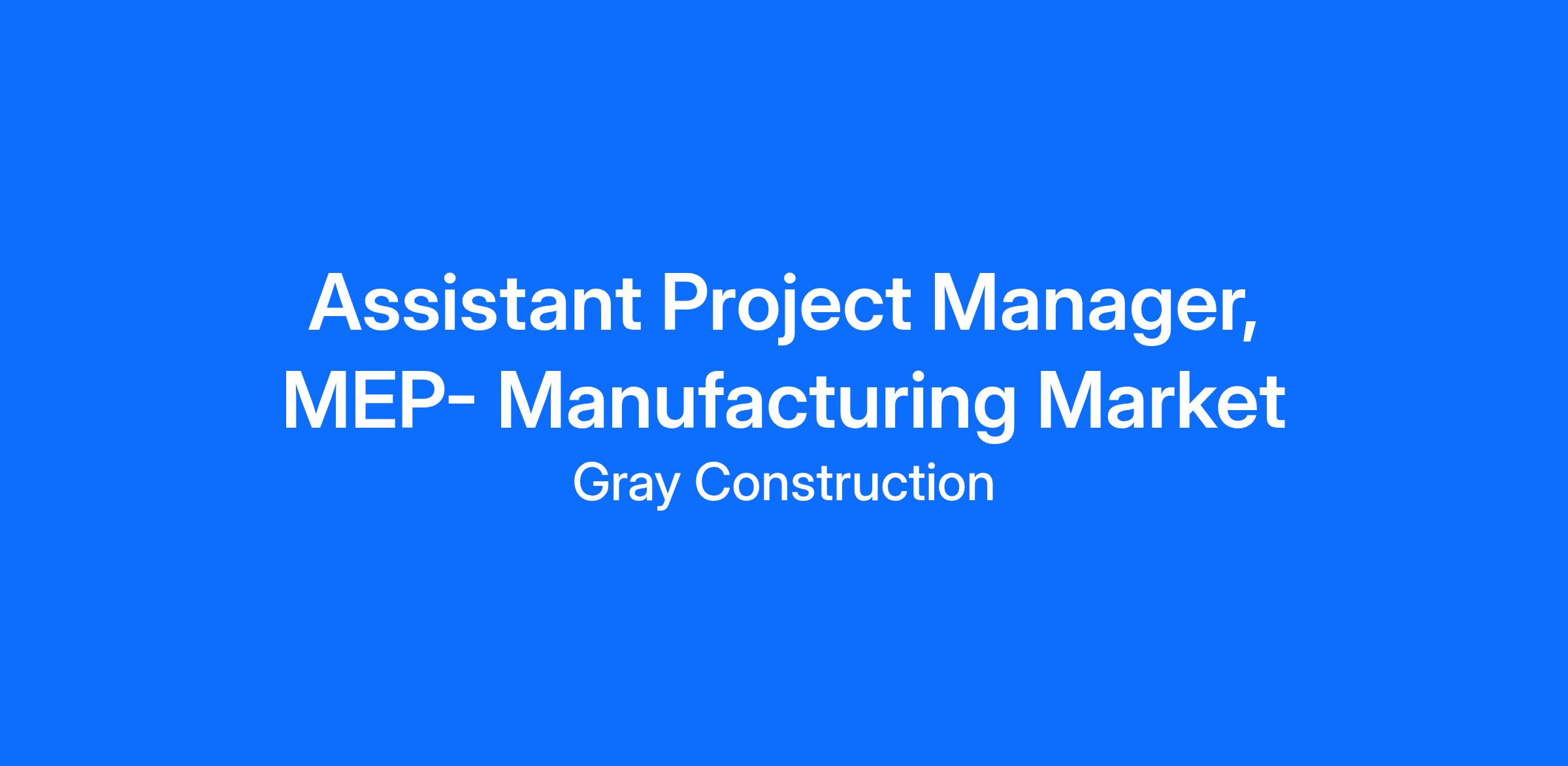 Gray Construction is looking to add an Assitant Project Manager, MEP to its Manufacturing team in our Charlotte, NC Office.