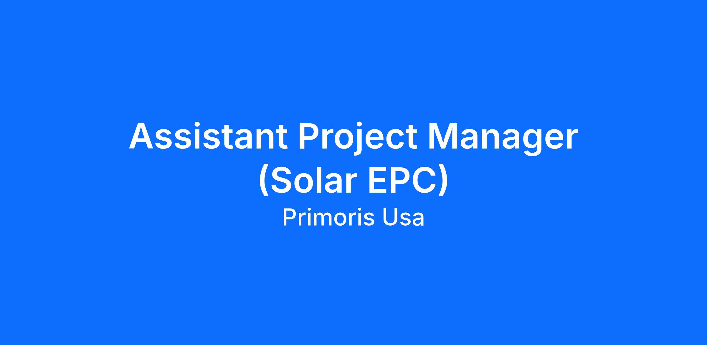 The Assistant Project Manager (APM) supports the Project Manager (PM) and site leadership team in the safe, highâquality, and efficient execution of utilityâscale solar, BESS, and HV construction projects. The APM assists with project administration, scheduling, forecasting, procurement, subcontract management, financial controls, document management, and client communication.