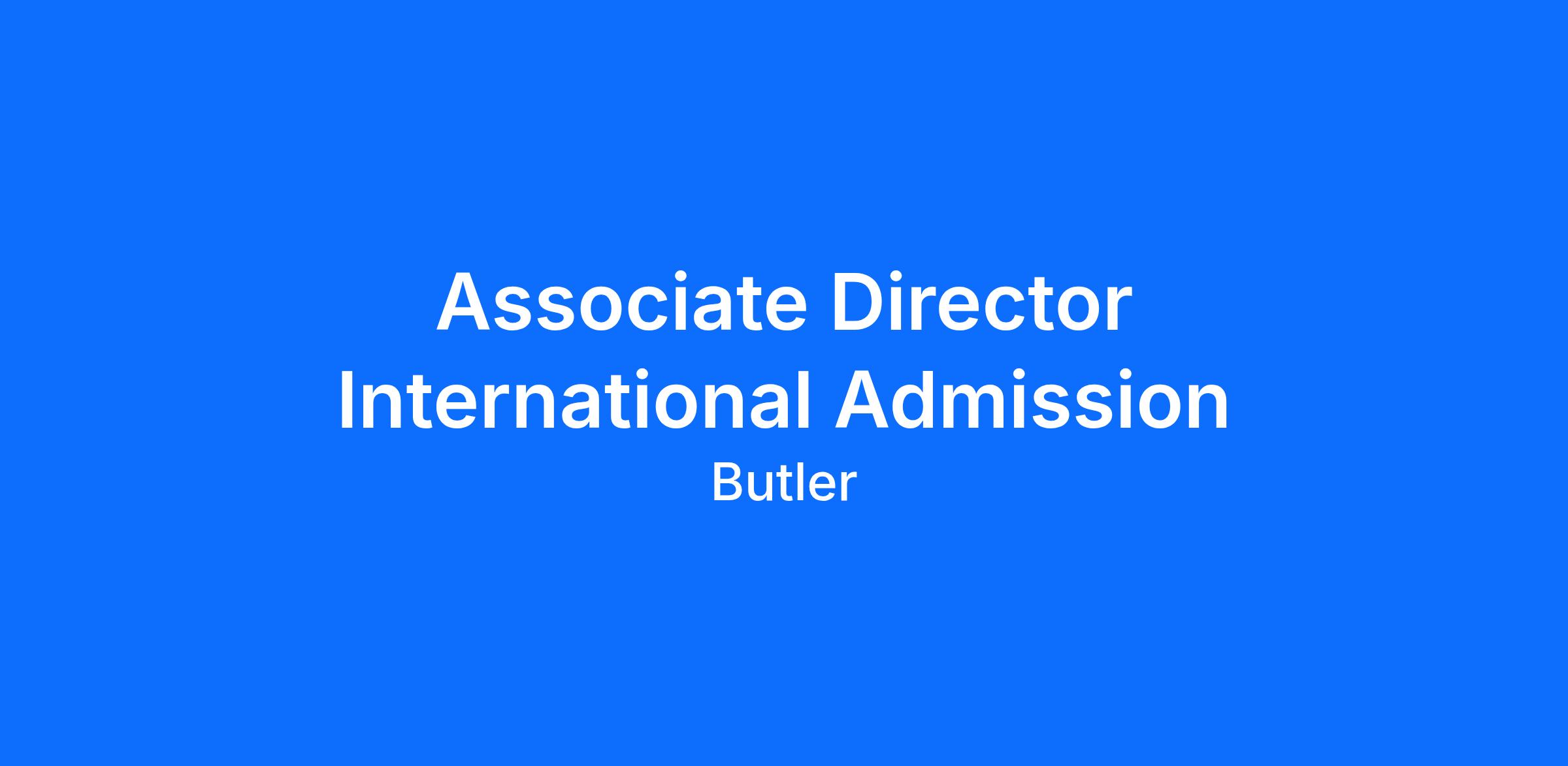 DescriptionButler University seeks a degreed and experienced professional to promote the university to prospective students and assist students and families in the admission process with the goal of increasing international student enrollment. The title is commensurate with experience.