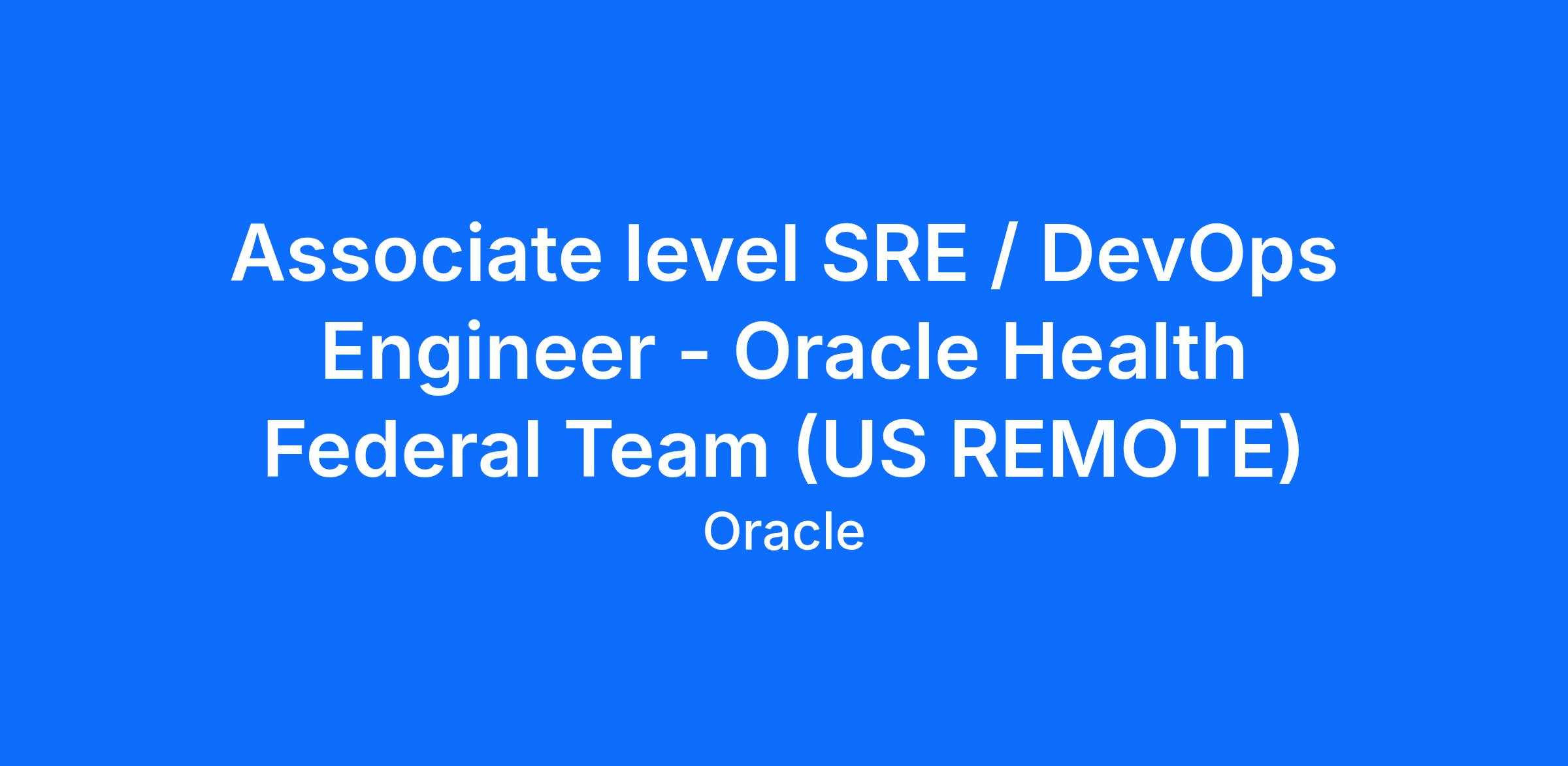 Associate level SRE / DevOps Engineer - Oracle Health Federal Team (US REMOTE)