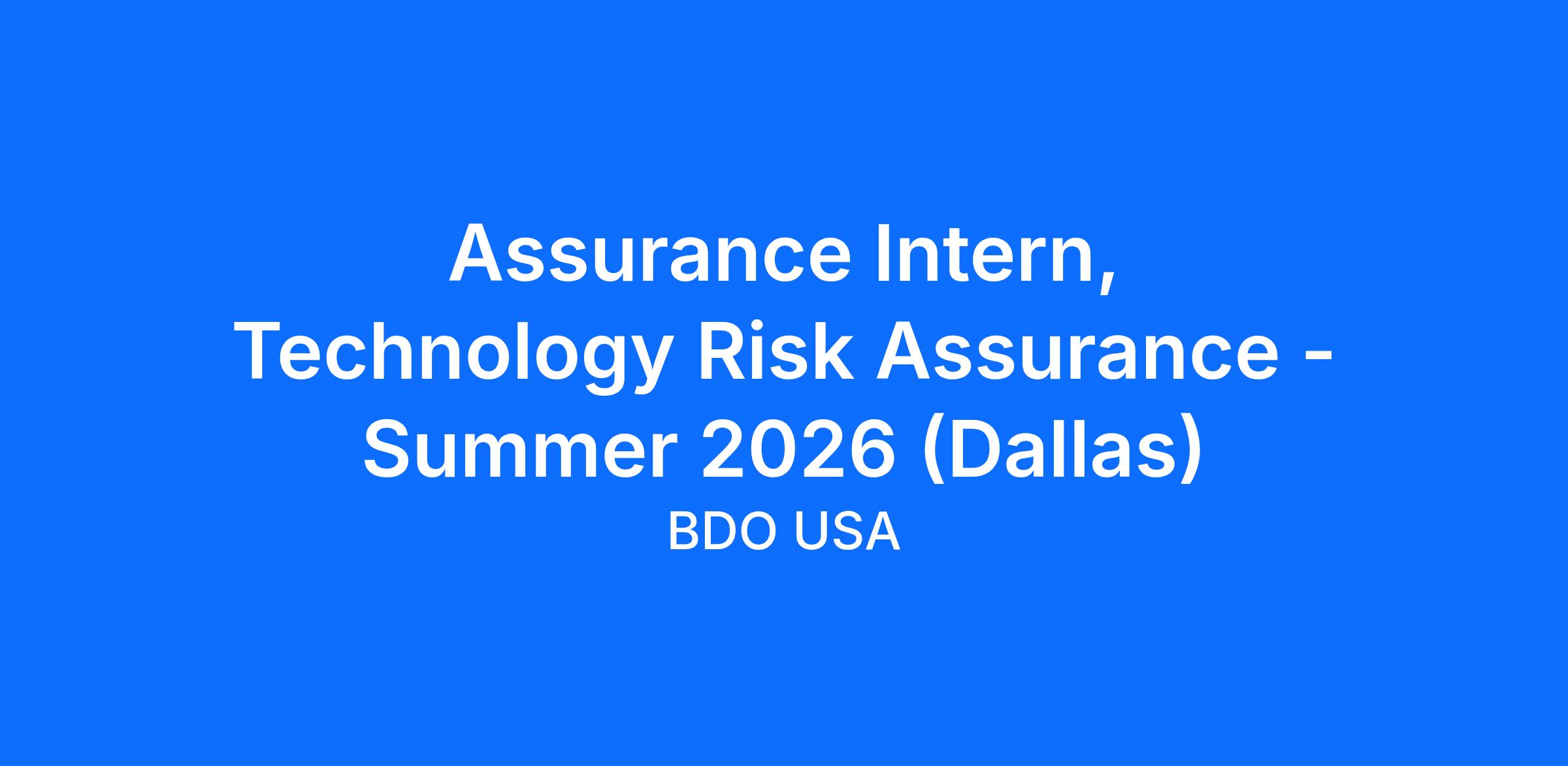 BDO is a place for energetic self-starters who can think and act like entrepreneurs. As an Intern in our Technology Risk Assurance practice, you will begin to utilize your educational background as well as your organizational skills as you serve the firm's dynamic client base. You will assist in problem solving and fact-finding, working side-by-side with more experienced team members who can provide you with direction, coaching and learning opportunities. This opportunity will allow you to gain a unique hands-on perspective on our firm’s practices and people, as well as beginning to forge the critical relationships that will help maximize your chance for success in your career.