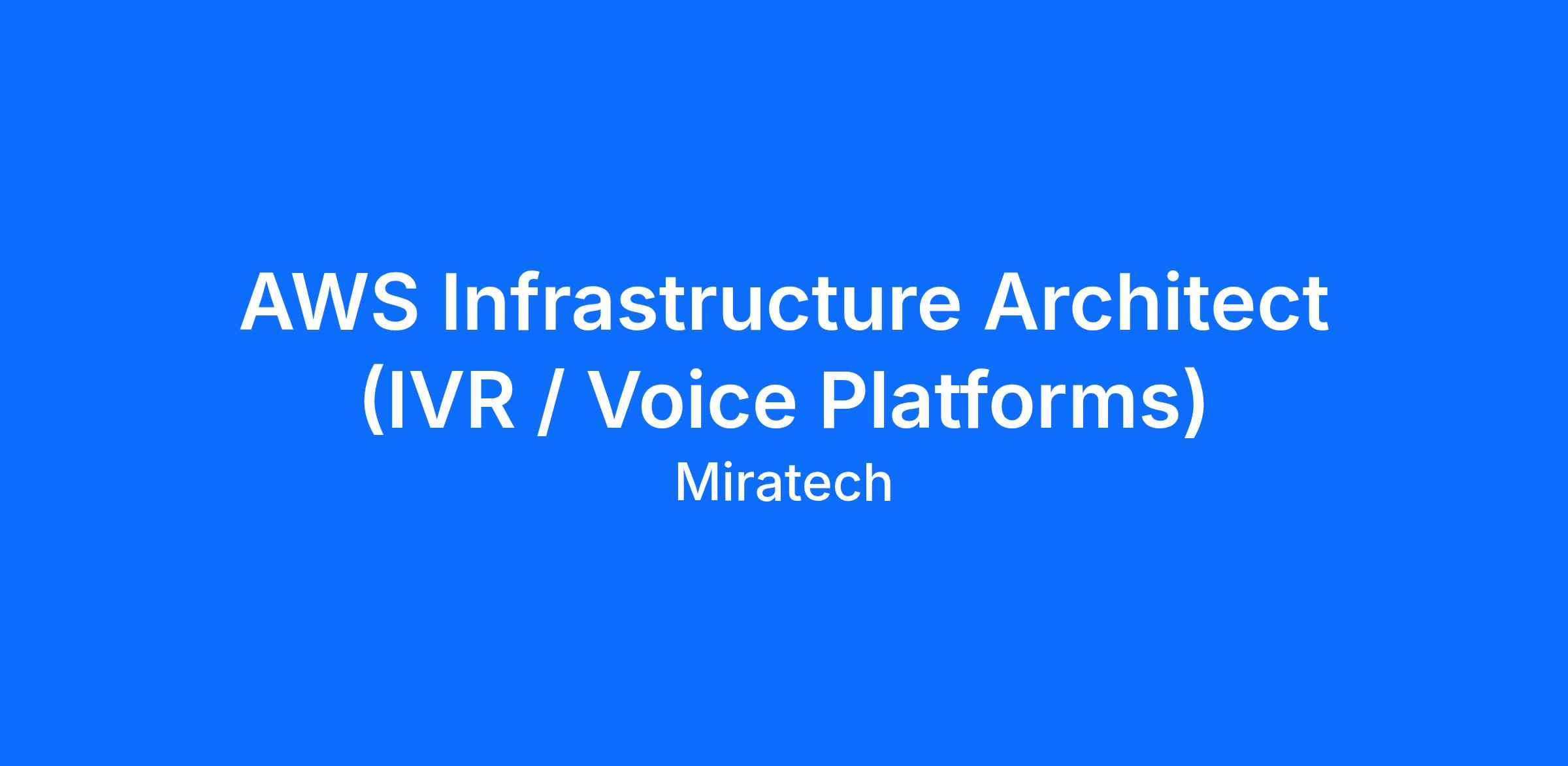 The Infrastructure Architect is a senior technical authority responsible for defining, owning, and evolving the AWS-based infrastructure that supports large-scale IVR and voice platforms.