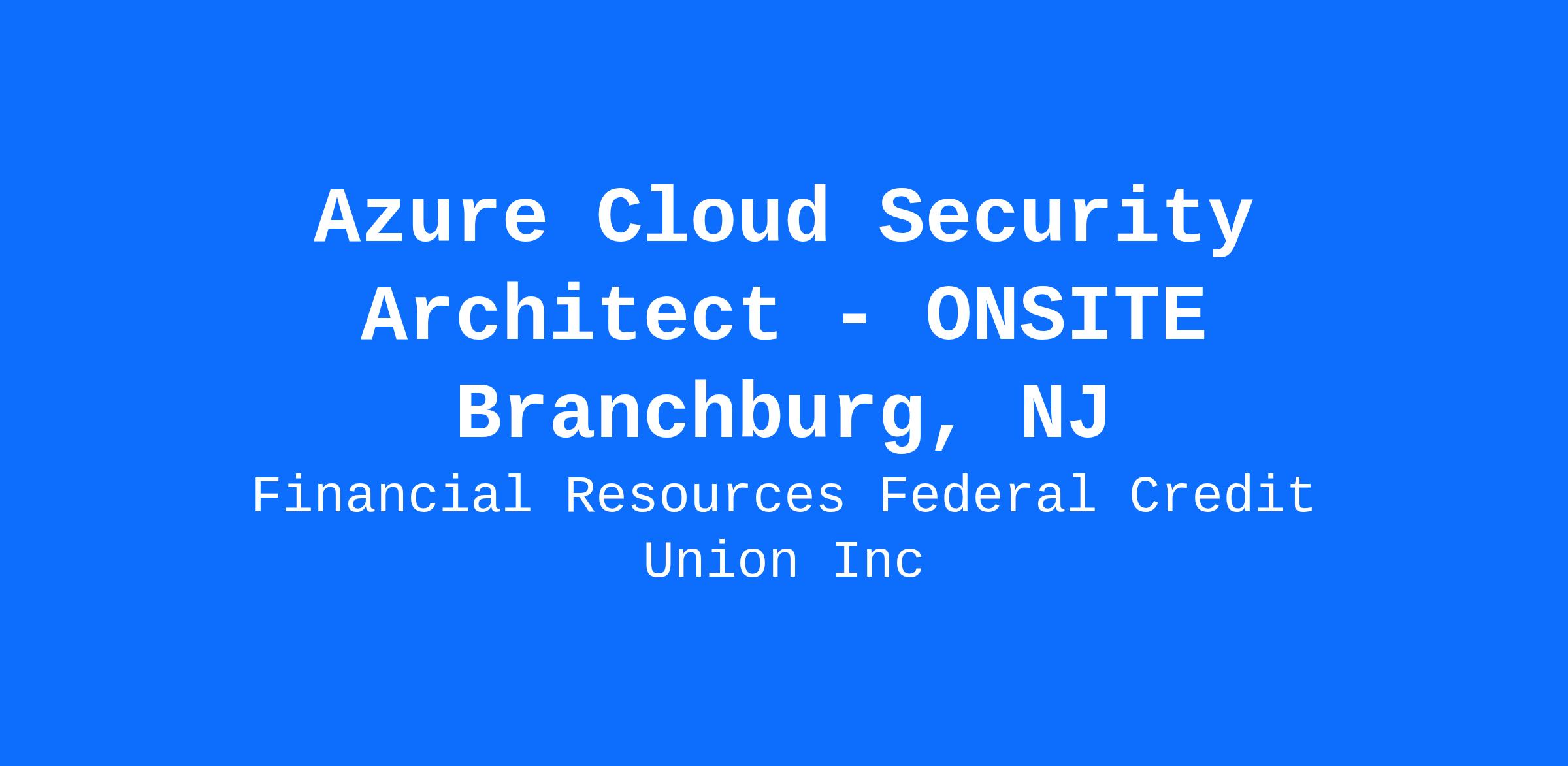 Financial Resources Federal Credit Union (FRFCU) is looking for an Azure Cloud Security Architect to join our Information Technology team in making a difference in peoples’ lives and helping us achieve our digital transformation goals! THIS POSITION IS LOCATED ON SITE IN BRANCHBURG, NJ.