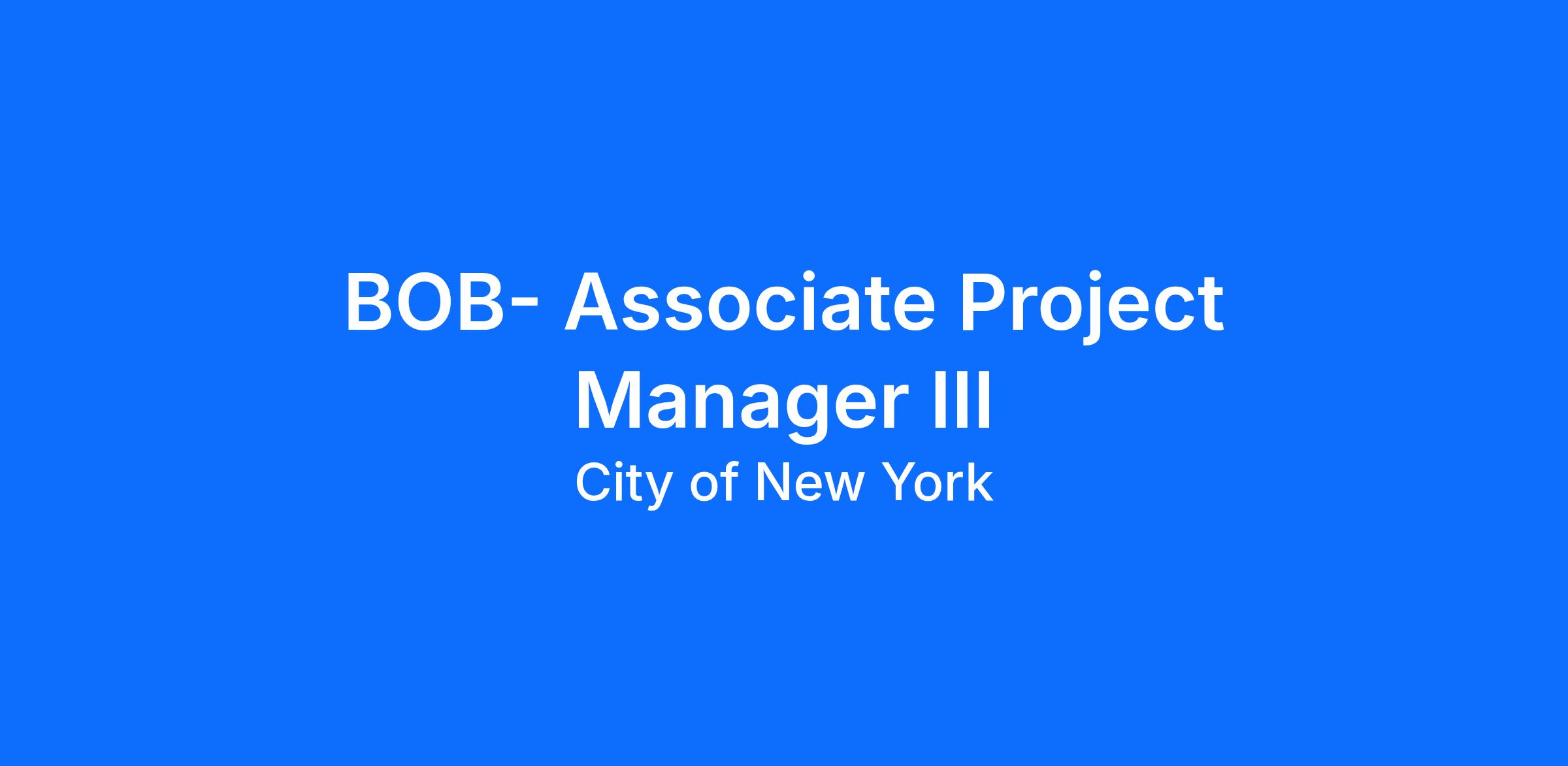 BOB- Associate Project Manager III