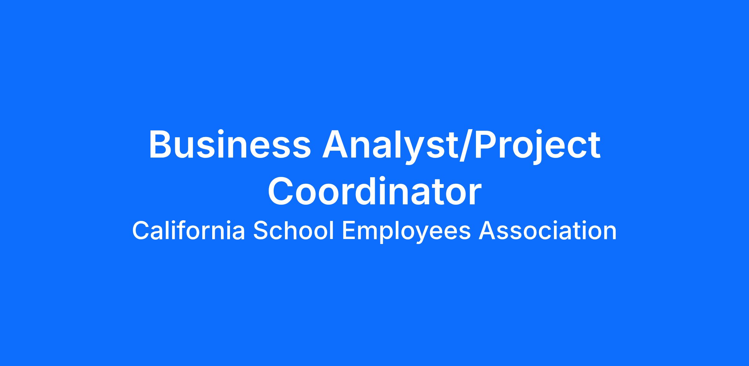 Business Analyst/Project Coordinator - San Jose, CA