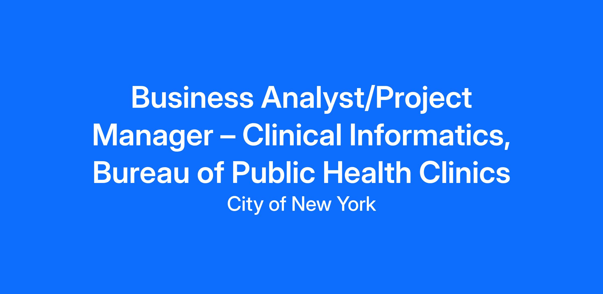 - Experience as a Business Analyst and/or Project Manager in clinical informatics or healthcare IT.