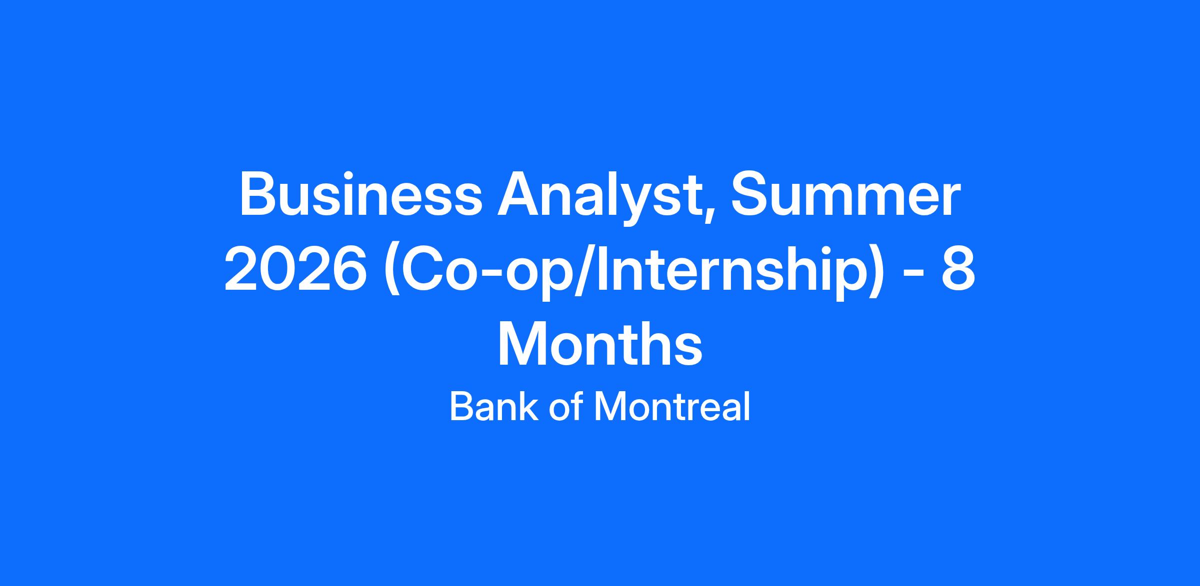 Note: Only students currently enrolled in an academic program and returning to their studies will be considered for Co-op/Internship opportunities. Student who recently graduated are invited to apply to our New Grad opportunities which are available at https://jobs.bmo.com/ca/en/new-grad