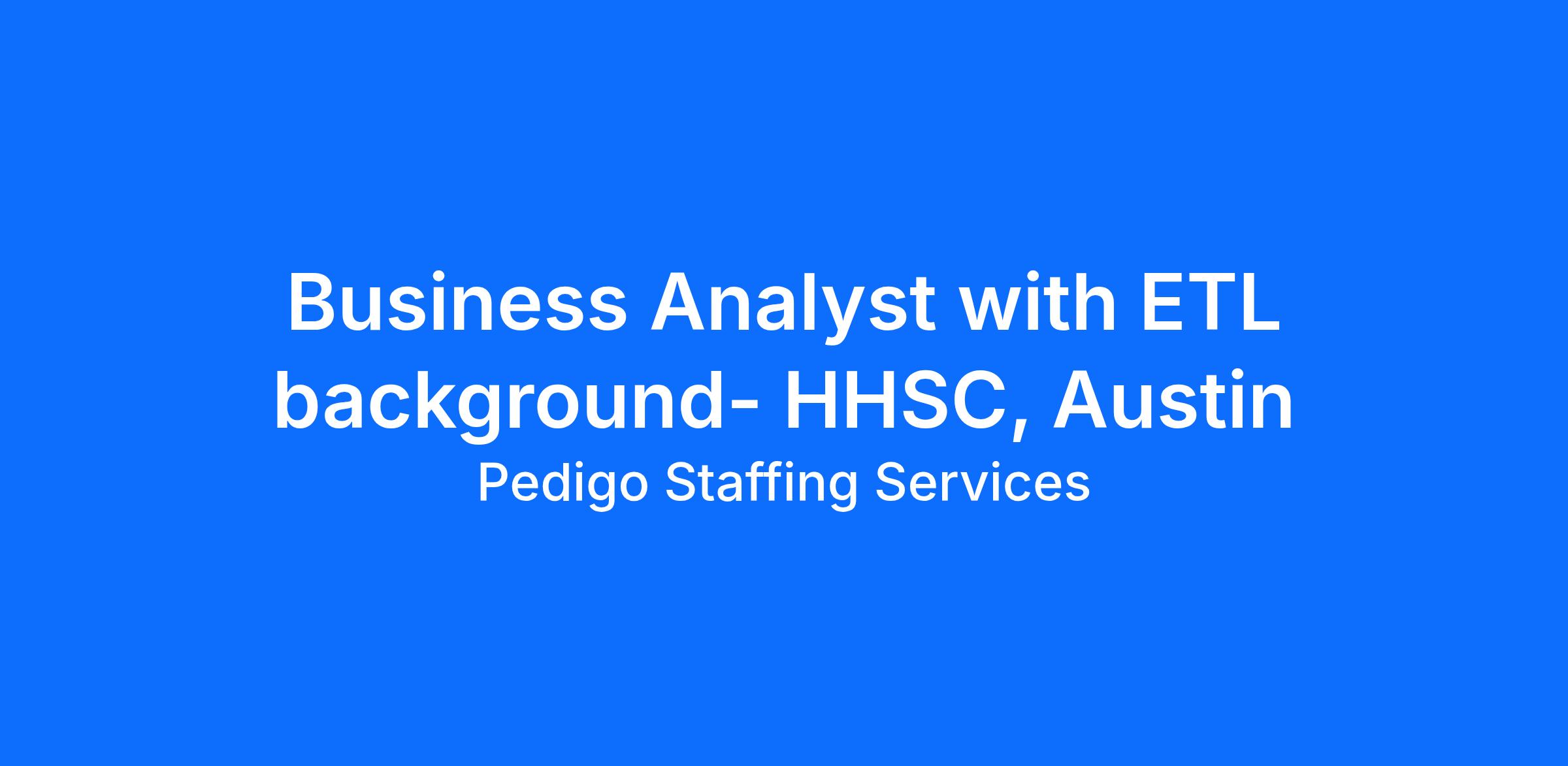 Texas Health and Human Services Commission requires the services of 1 Business Analyst 2, hereafter referred to as Candidate(s), who meets the general qualifications of Business Analyst 2, Applications/Software Development and the specifications outlined in this document for the Texas Health and Human Services Commission.