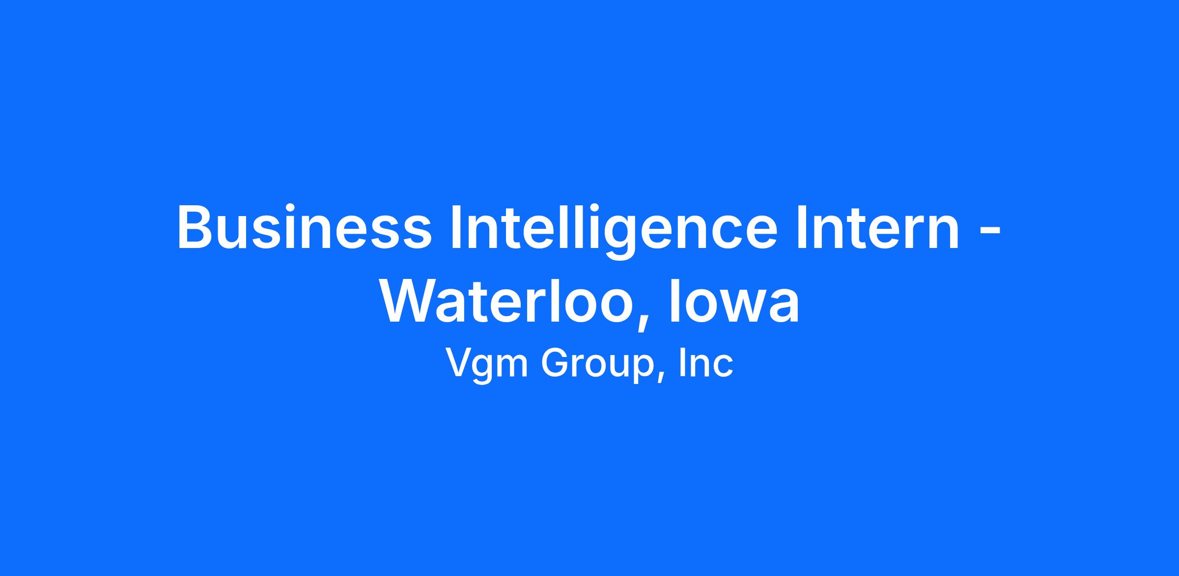 Business Intelligence Intern - Waterloo, Iowa