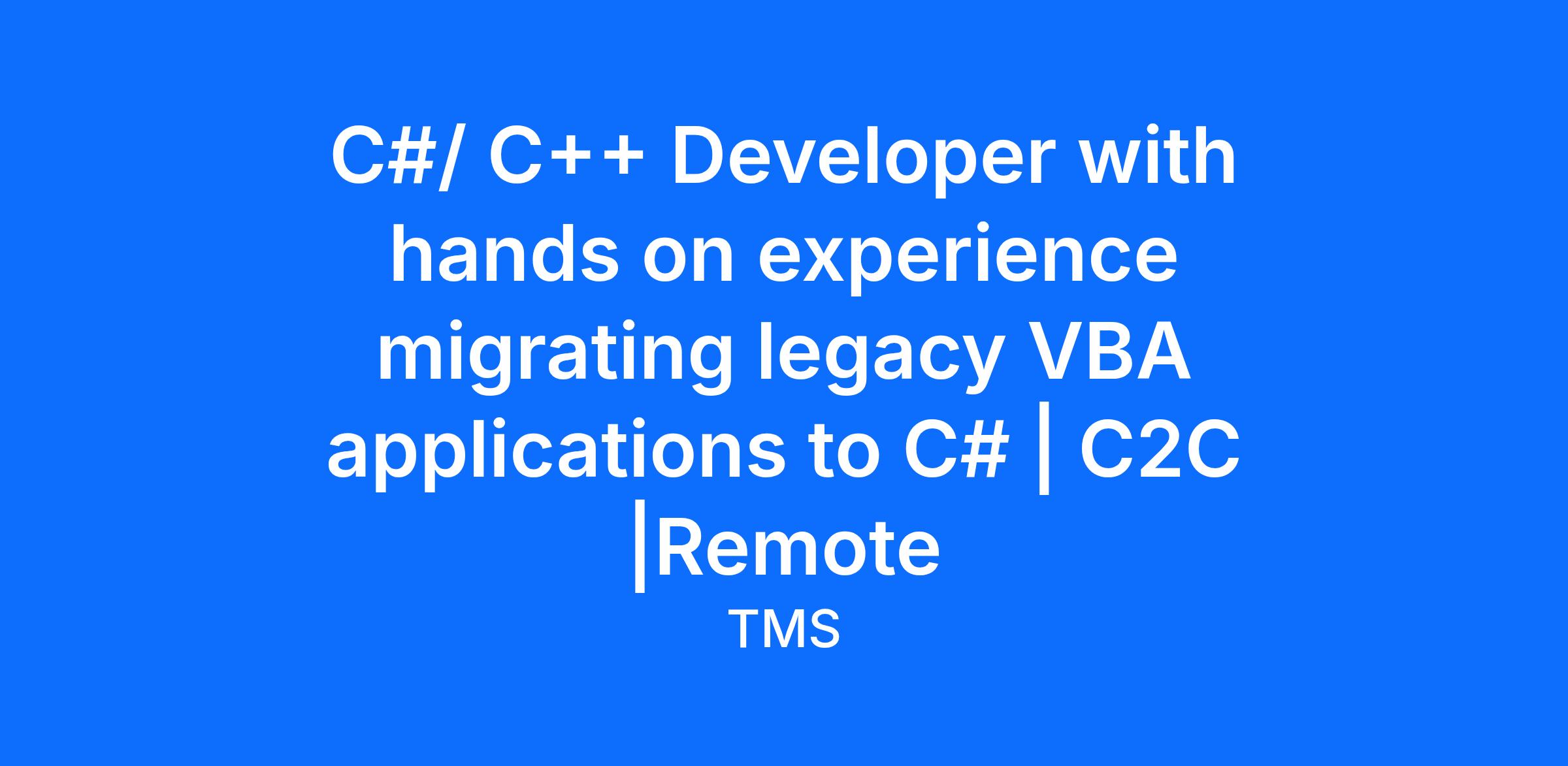 Role: C#/ C++ Developer with hands on experience migrating legacy VBA applications to C#