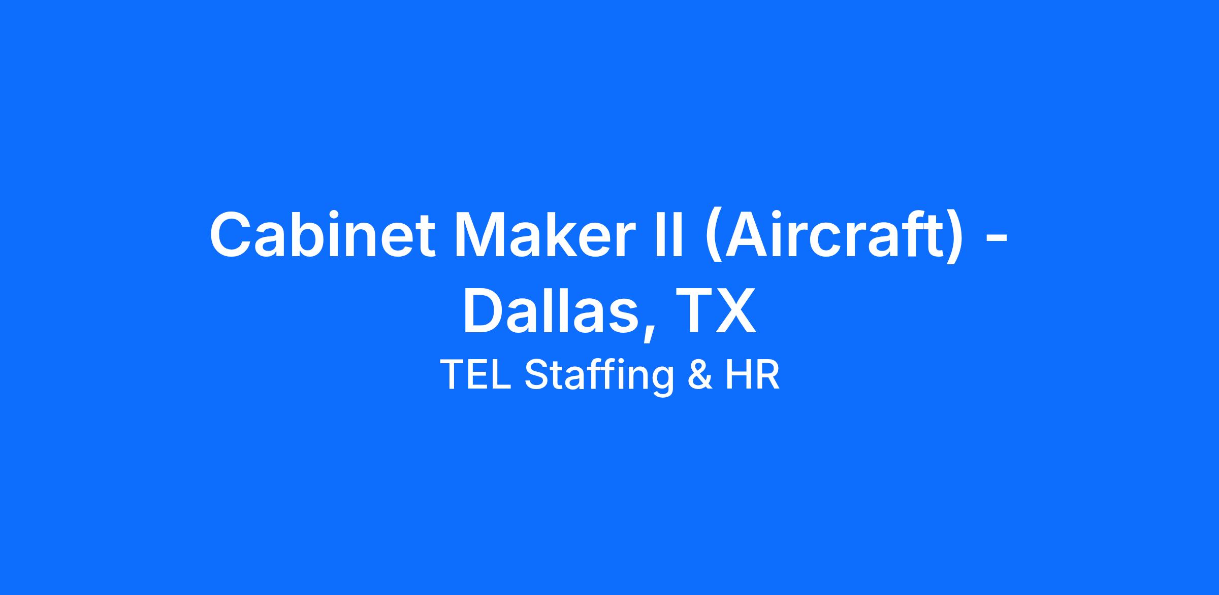 Compensation: $26.93/hr ST $40.40/hr OTUnder general supervision, fabricates aircraft furniture and other wood-surfaced subassemblies using aircraft specifications, design, and engineering drawings with a high level of safety, quality, detail, and productivity. Assists team members with greater experience to enhance techniques supportive of quality workmanship.
