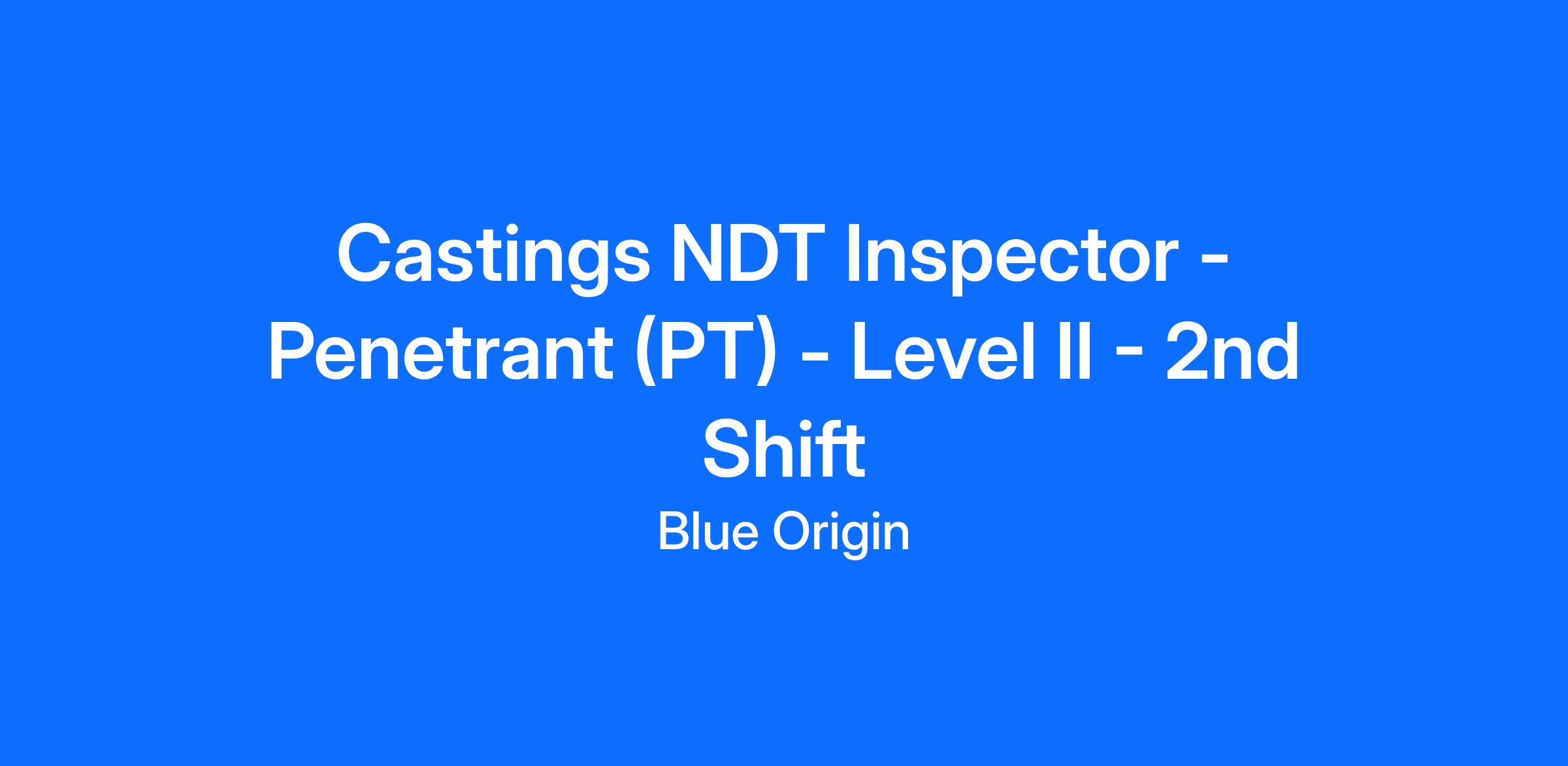 This role is part of Blue Origin Operations, which is comprised of Integrated Supply Chain, Test Operations, Safety, Quality, and Mission Assurance. This includes Manufacturing and Supply Chain support across all Blue Origin facilities.As part of a hardworking team of technicians, you will perform multiple NDT methods for various spaceflight systems. You will share in the team’s impact on all aspects of assuring part integrity, quality and life span. This position will directly impact the history of space exploration and will require your dedicated commitment and detailed attention towards safe and repeatable spaceflight.