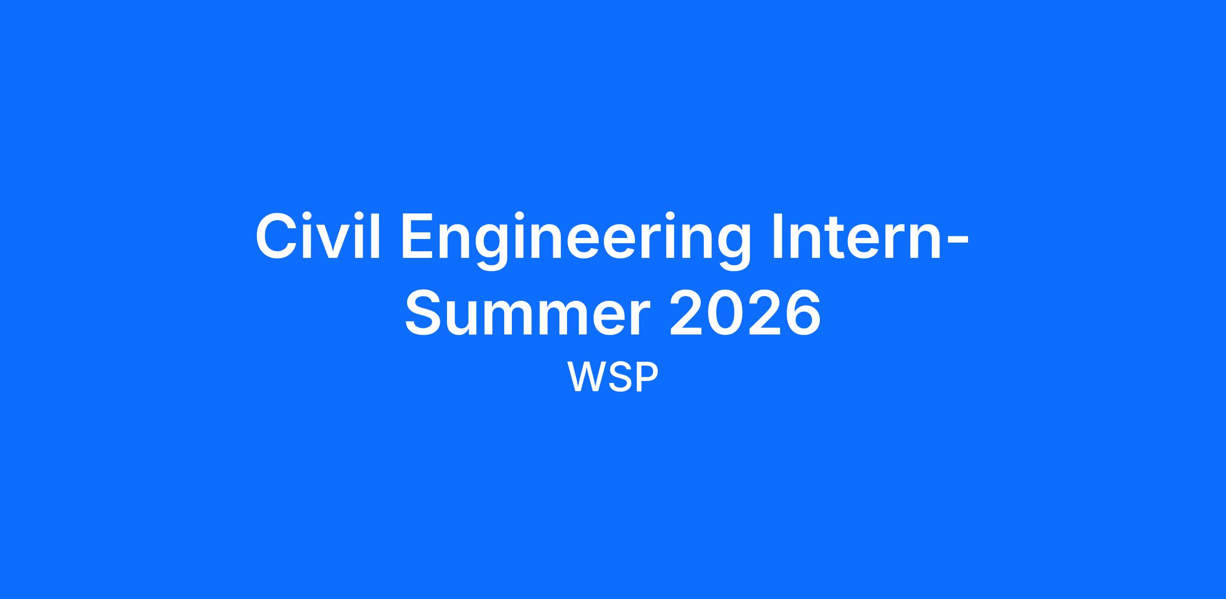 This internship will be part of the WSP Summer Internship Program. As a summer intern, you have the opportunity to participate in our 12-week program scheduled to start on May 18th, 2026. The individual start date of the internship may be flexible.