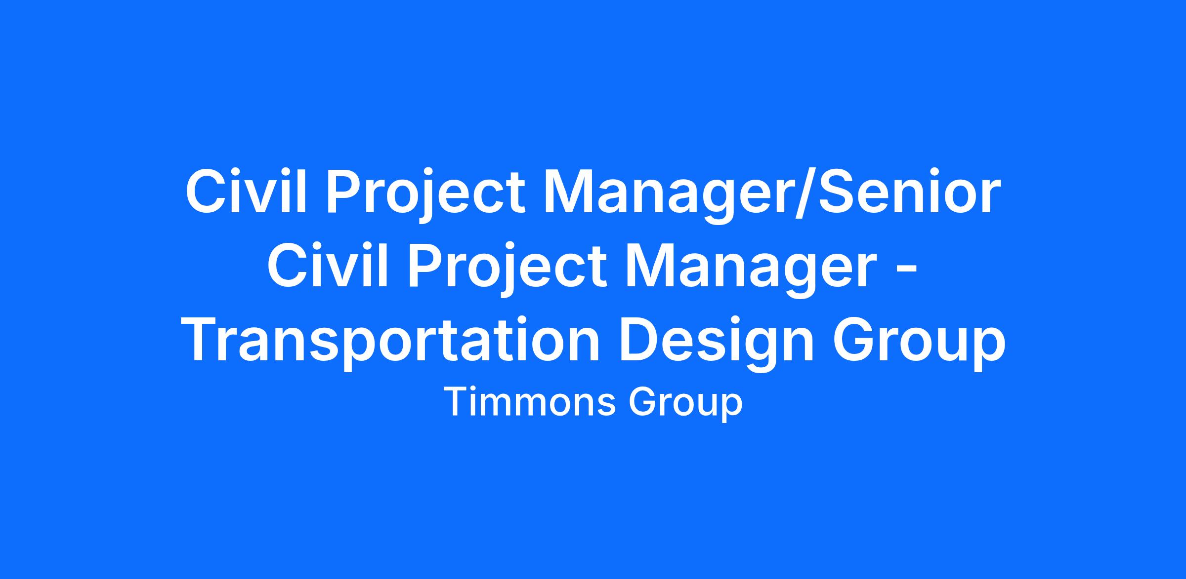 Timmons Group is seeking a Civil Project Manager/Senior Civil Project Manager - Transportation Group candidate to join our Transportation Design Group located in our Charlottesville, VA office location.