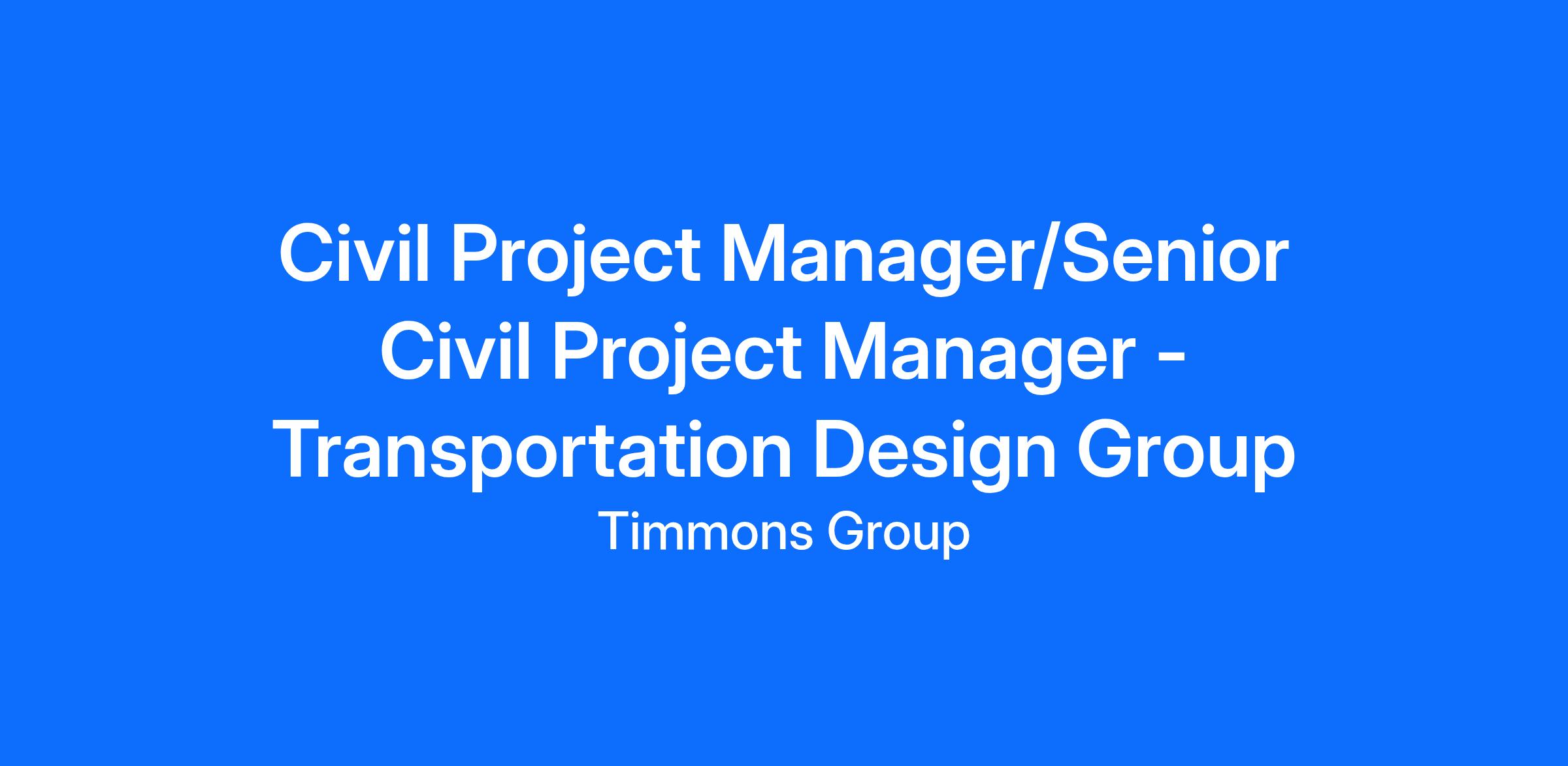 Timmons Group is seeking a Civil Project Manager/Senior Civil Project Manager - Transportation Group candidate to join our Transportation Design Group located in our Charlottesville, VA office location.