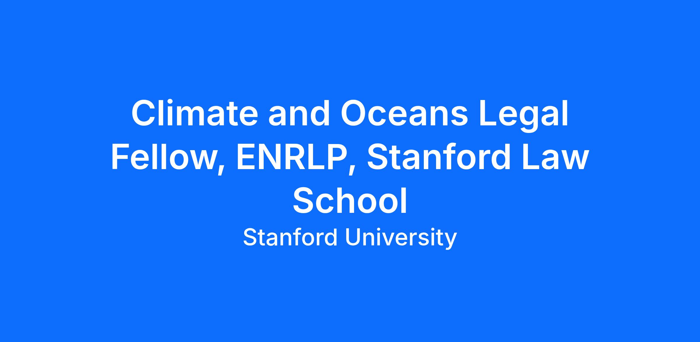 Stanford Law School invites applications for a full-time resident Climate and Oceans Legal Fellow to join its thriving Environmental and Natural Resource Law & Policy (ENRLP) Program in the fall of 2026.