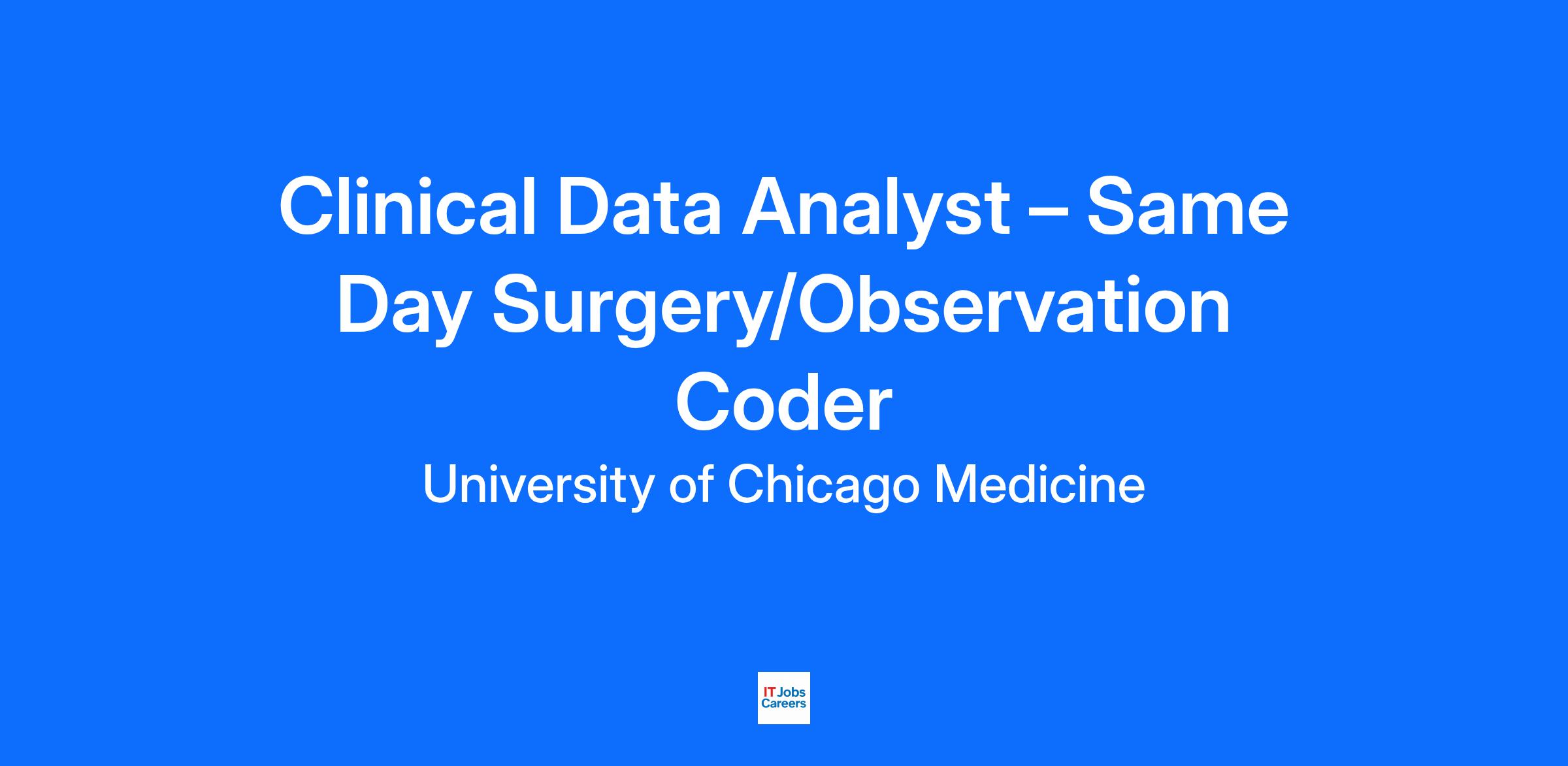 Be a part of a world-class academic health-care system at UChicago Medicine as a Clinical Data Analyst – Same Day Surgery/Observation Coder. This is a remote, work from home opportunity and you may be based outside of the greater Chicagoland area.