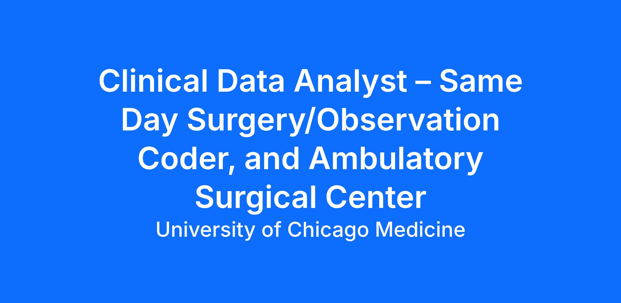 Be a part of a world-class academic health-care system at UChicago Medicine as a Clinical Data Analyst – Same Day Surgery/Observation Coder, and Ambulatory Surgical Center. This is a remote, work from home opportunity and you may be based outside of the greater Chicagoland area.