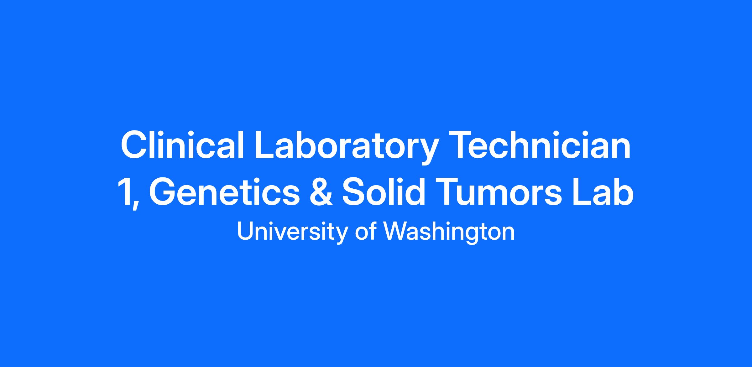 The UW Medicine - Department of Laboratory Medicine & Pathology (DLMP) in Seattle, WA has a fantastic opportunity for a Clinical Laboratory Technician 1 with the Genetics & Solid Tumors Lab at the University of Washington Medical Center – Montlake.