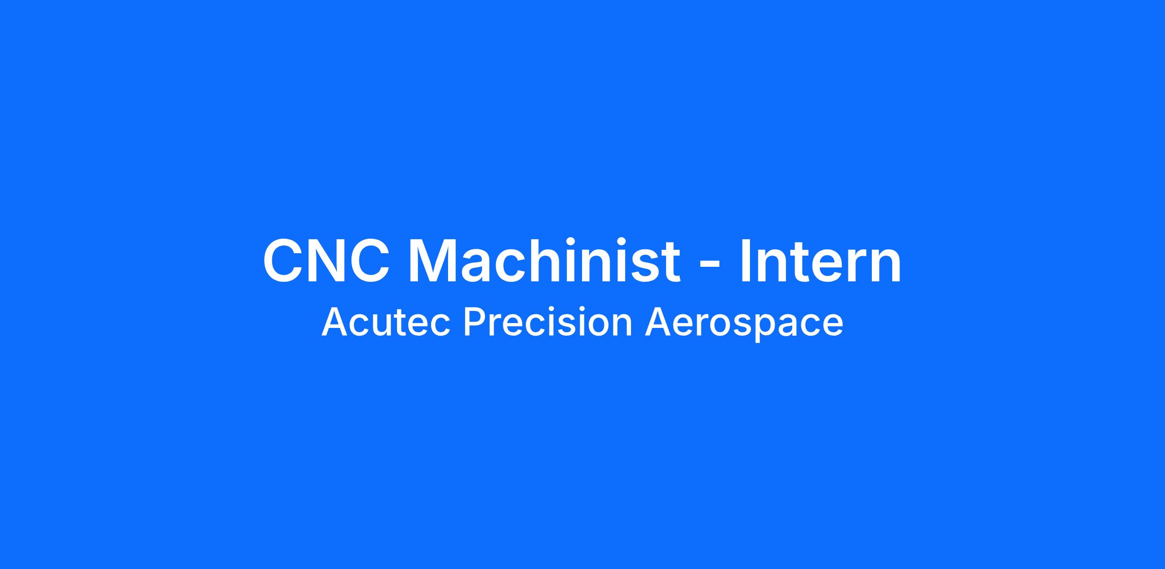Acutec Precision Aerospace is an award-winning and forward-thinking manufacturer of critical components for aerospace and military aircraft. Our team values collaboration, innovation, and shares their knowledge and experience with those around them. Your ASCEND internship will provide you with fulfilling, exciting experiences and projects, all within a clean, well lit, climate-controlled facility. The ASCEND Internship Program is focused on your long-term success and provides you with the right tools to reach your goals both personally and professionally.