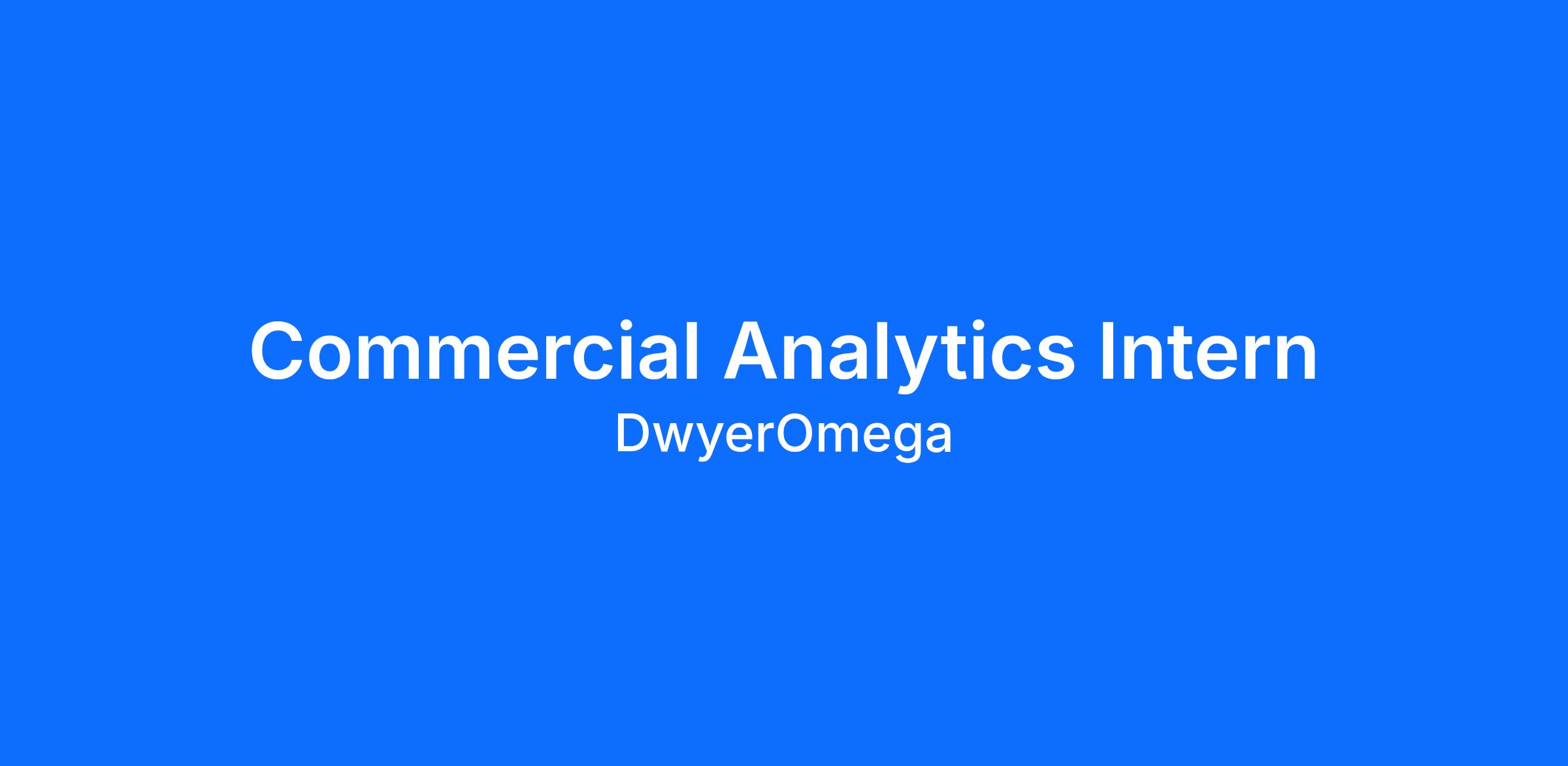 The Commercial Analytics Intern will play a meaningful role within the DwyerOmega Commercial Excellence team, helping drive data-informed decisions that support revenue growth and operational efficiency. In this role, the intern will collaborate with cross-functional stakeholders to design scalable systems, strengthen data governance, and develop analytics that improve visibility into commercial performance.