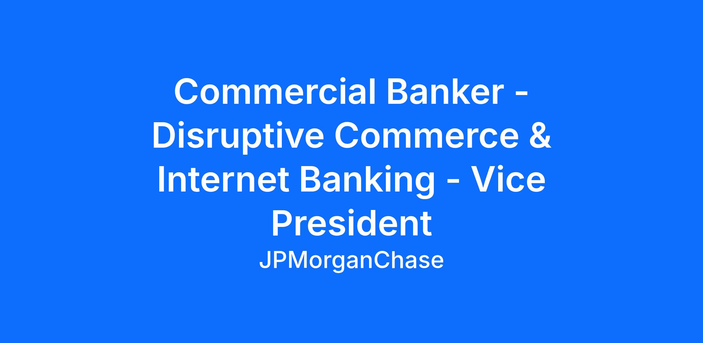 The Disruptive Commerce and Internet Banking team is part of J.P. Morgan's Commercial and Specialized Industries group. In this role you will be the focal point of client acquisition and ongoing relationships with the world’s most innovative companies. We work both independently and as part of a dynamic team to deliver the entire firm to our clients.