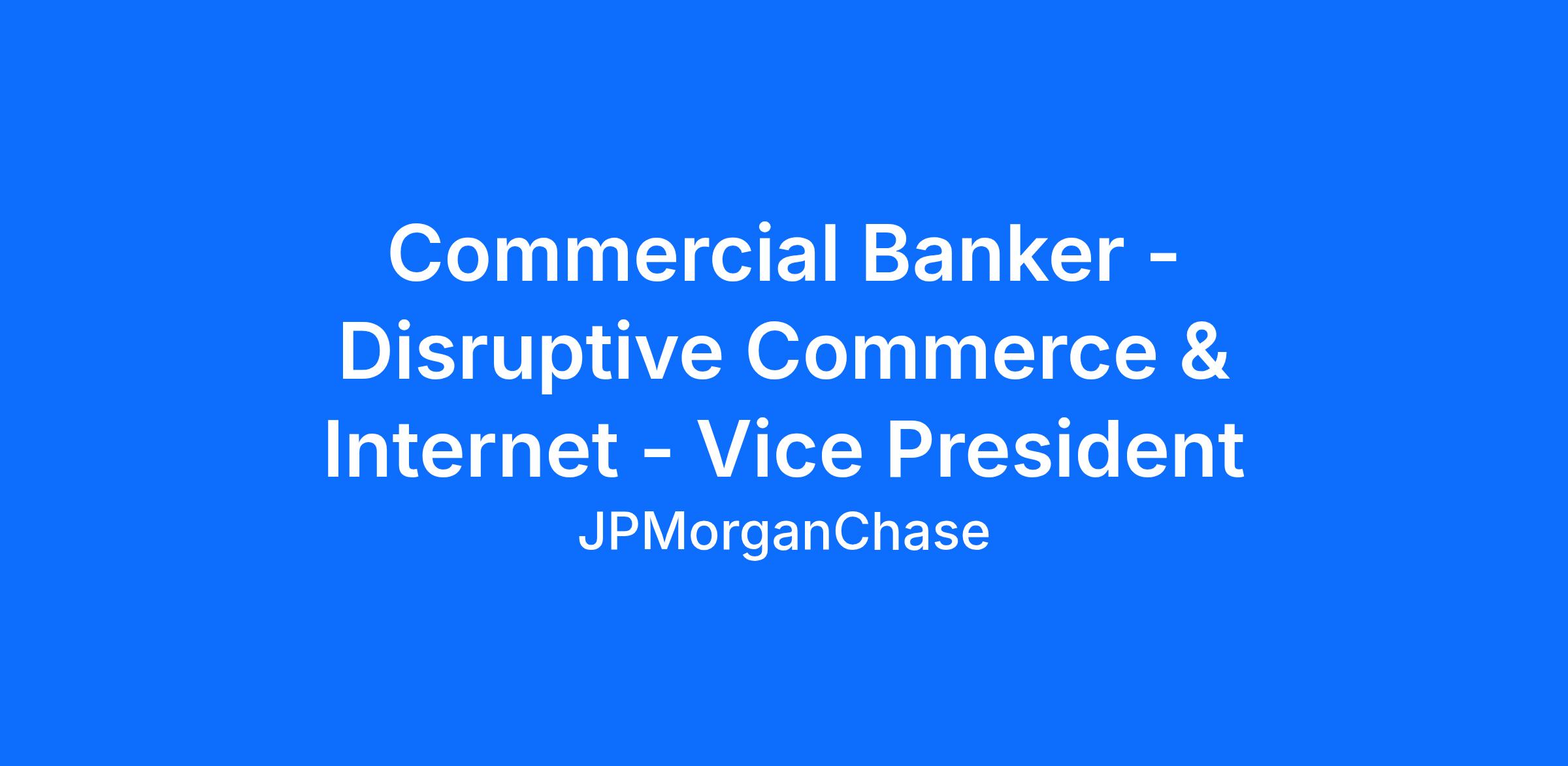 The Disruptive Commerce and Internet Banking team is part of J.P. Morgan's Commercial and Specialized Industries group. In this role you will be the focal point of client acquisition and ongoing relationships with the world’s most innovative companies. We work both independently and as part of a dynamic team to deliver the entire firm to our clients.