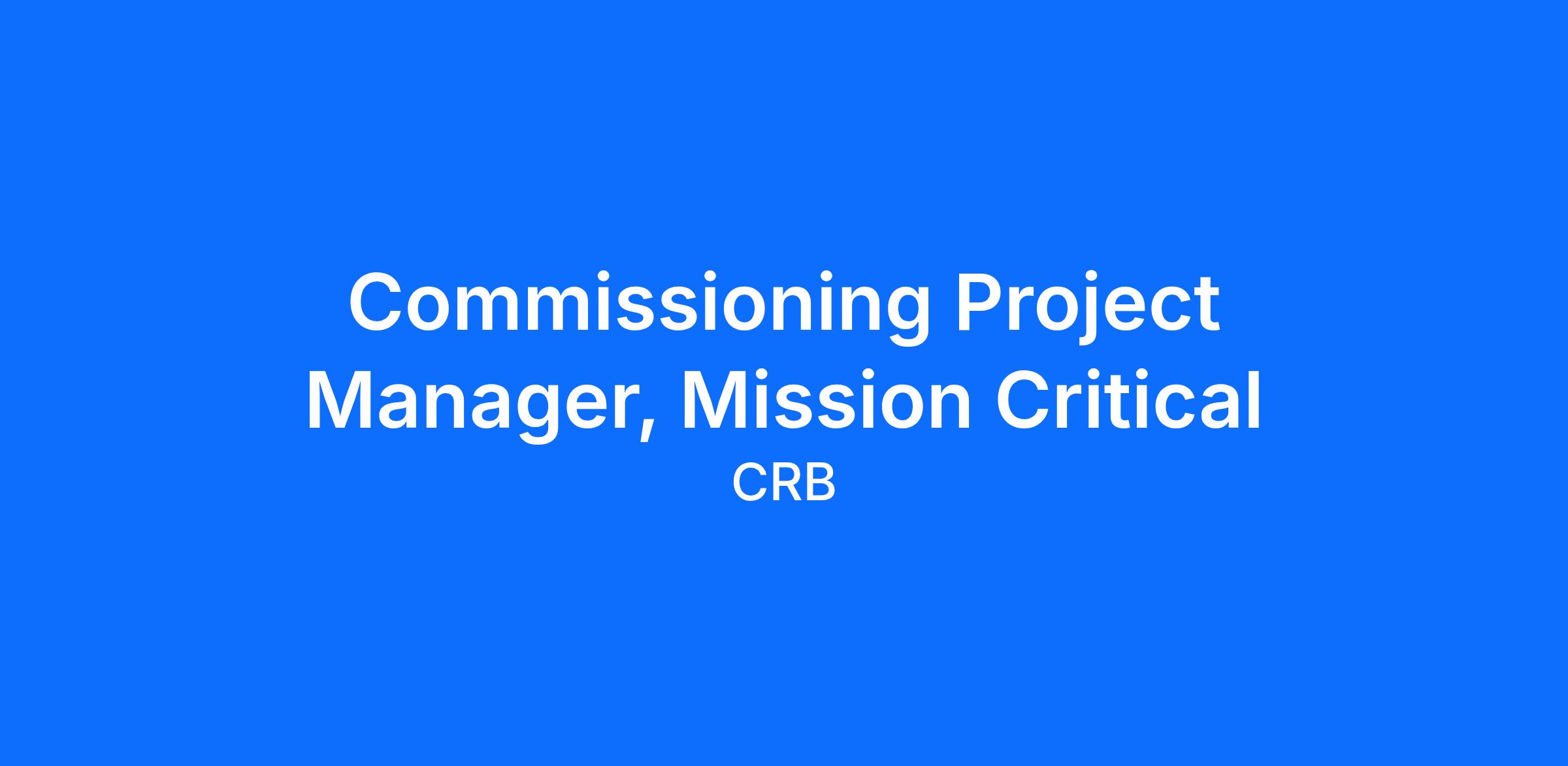 CRB is looking for an energetic, self-motivated individual for the role of Commissioning Project Manager, Mission Critical. This individual will be responsible for overseeing the installation, commissioning, and documentation of MEP systems throughout the project lifecycle for data center facilities. This leadership and guidance will ensure that our Client’s have a Right-the-First Time (RFT) solution that has mitigated risks and met their demands for timeline objectives. This role involves a high level of project management, organization, communication, and leadership to ensure successful commissioning efforts. The qualified candidate should display excellent interpersonal skills to form strong relationships with internal and external clients. They will represent CRB in a professional manner, assist in winning work, and understand how their strategy directly impacts our collective success.